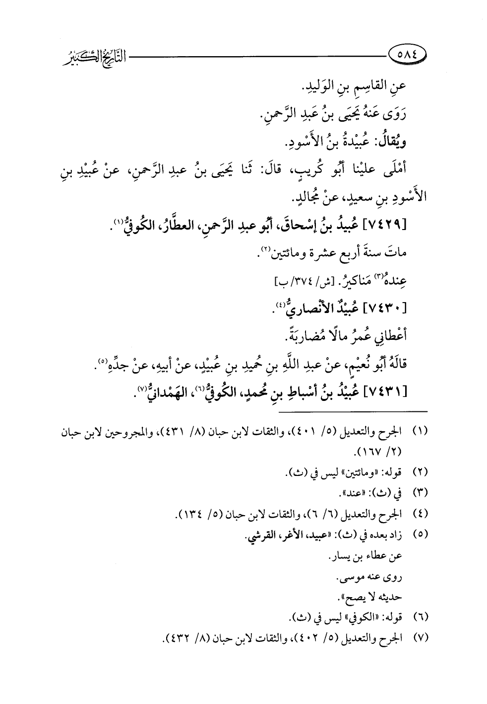(¬٧) الجرح والتعديل (٥/ ٤٠٢)، والثقات لابن حبان (٨/ ٤٣٢).