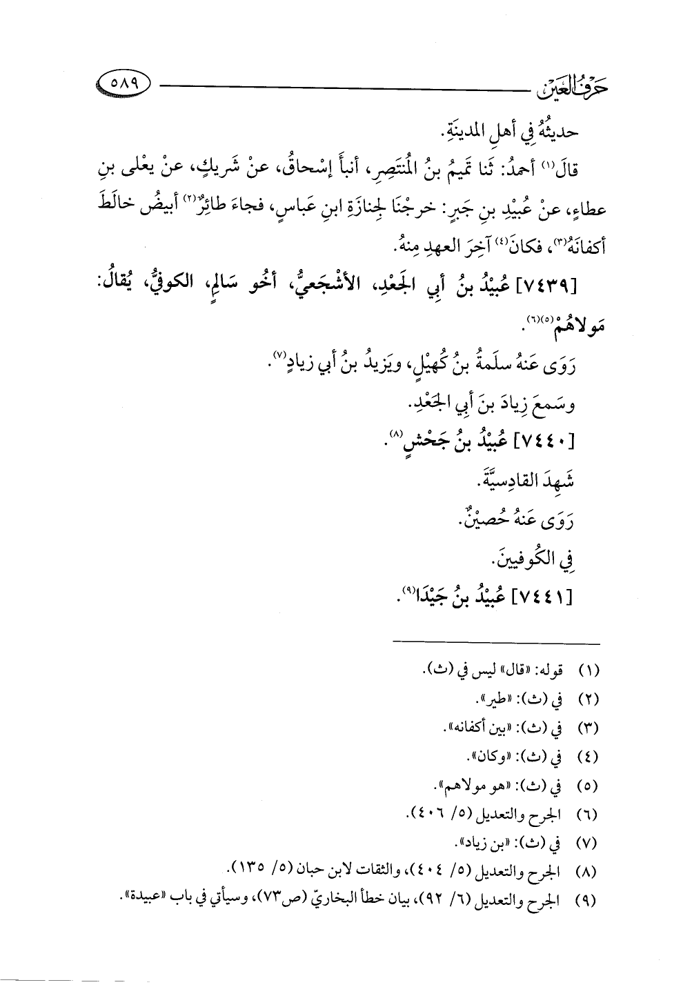 (¬٩) الجرح والتعديل (٦/ ٩٢)، بيان خطأ البخاريّ (ص ٧٣)، وسيأتي في باب "عبيدة".