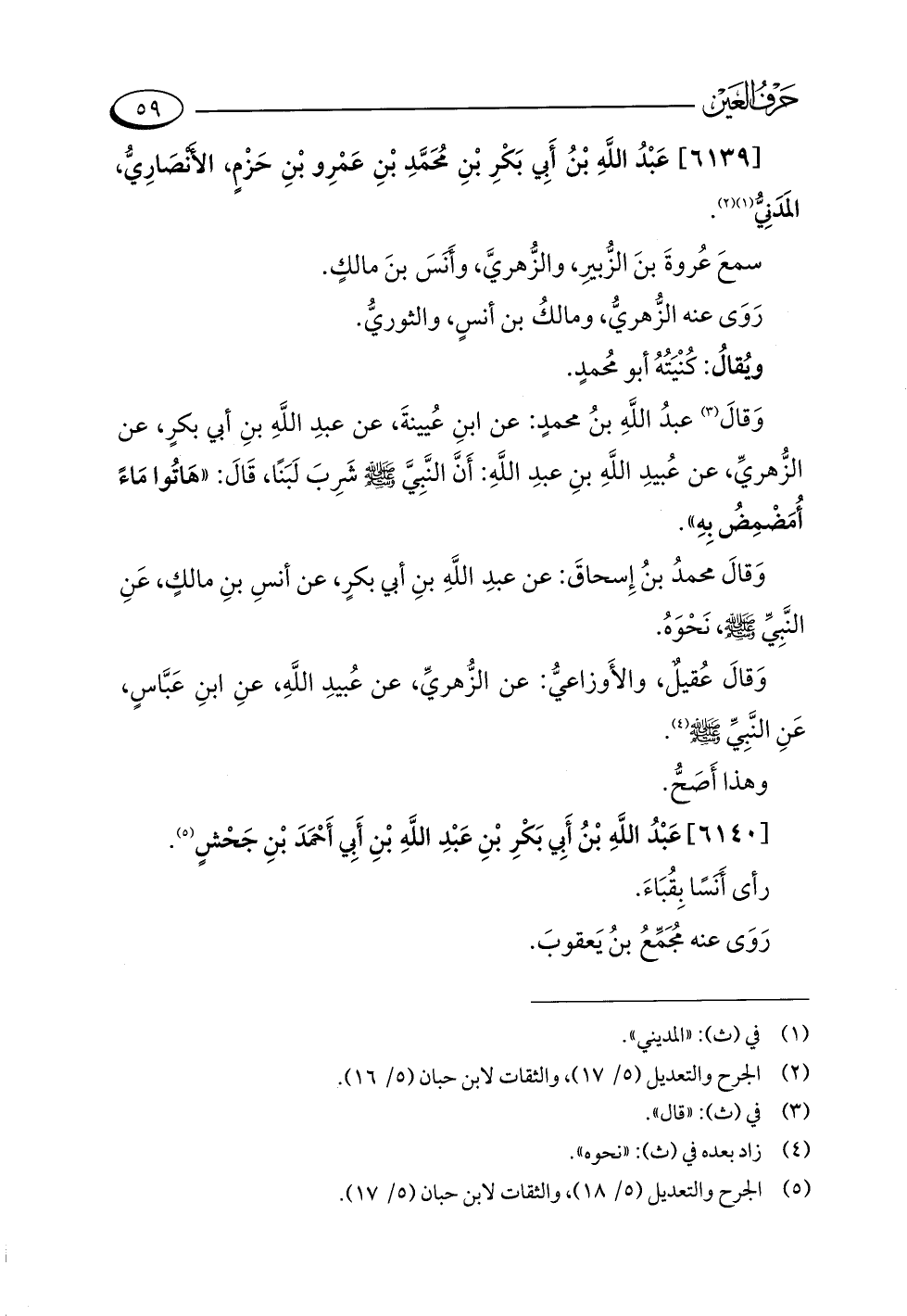 (¬٥) الجرح والتعديل (٥/ ١٨)، والثقات لابن حبان (٥/ ١٧).
