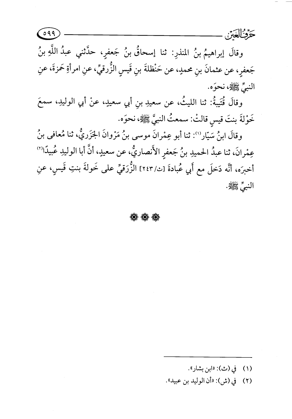 وقالَ ابنُ سَيّار (¬١): ثنا أبو عِمْرانَ موسى بنُ مَرْوانَ الجزَريُّ، ثنا مُعافى بنُ عِمْرانَ، ثنا عبدُ الحميدِ بنُ جَعفرٍ الأَنصاريُّ، عن سعيدٍ، أنَّ أبا الوليدِ عُبيدًا (¬٢) أخبرَه، أنَّه دَخلَ مع أَبي عُبادةَ الزُّرَقيِّ على خَولةَ بنتِ قَيسٍ، عنِ النبيِّ -صلى اللَّه عليه وسلم-.