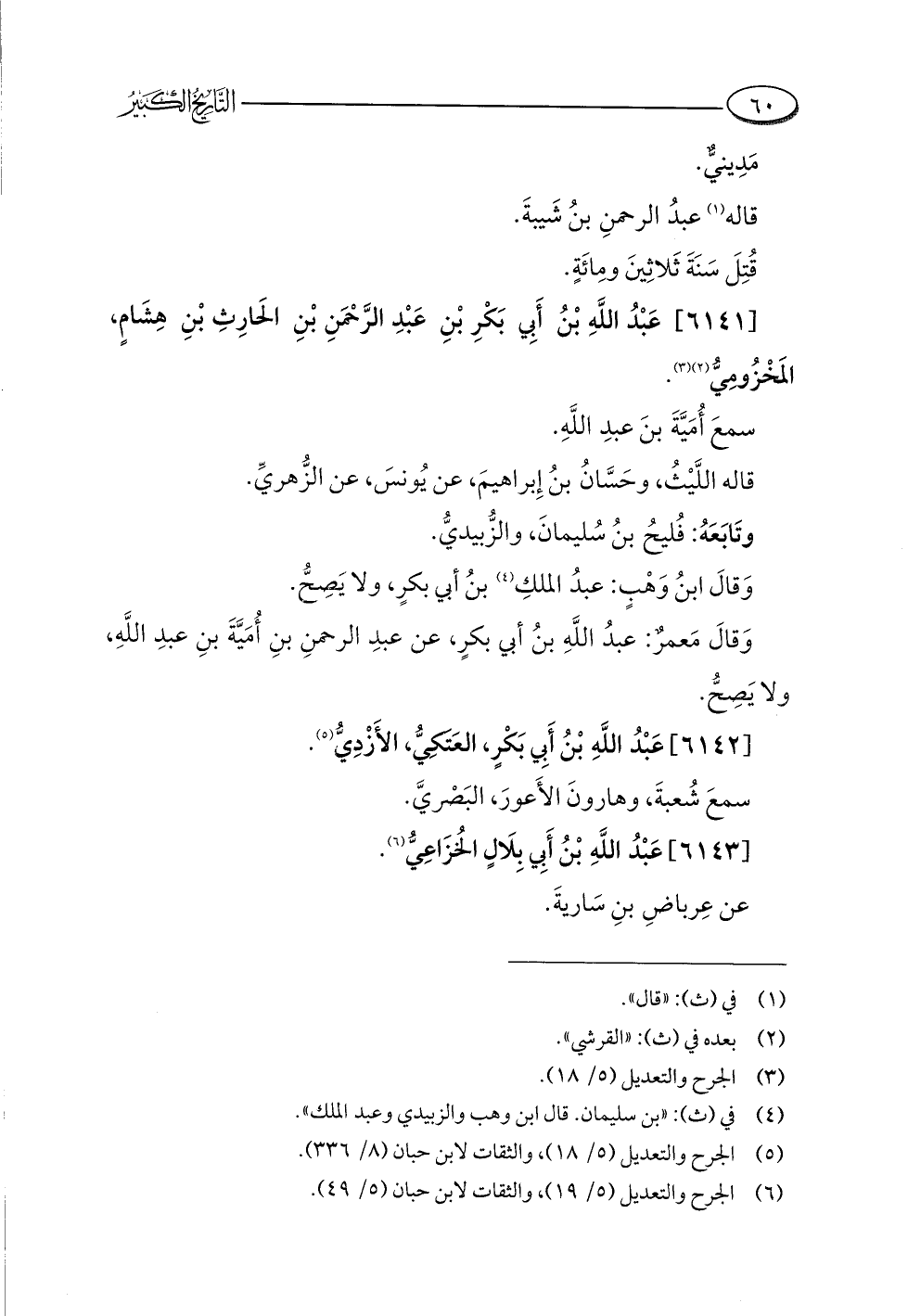 (¬٦) الجرح والتعديل (٥/ ١٩)، والثقات لابن حبان (٥/ ٤٩).