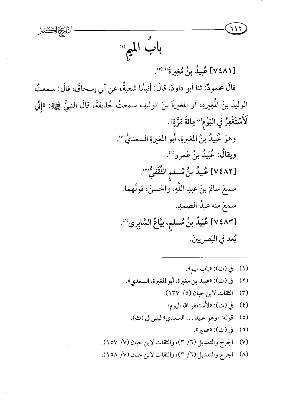 (¬٨) الجرح والتعديل (٦/ ٣)، والثقات لابن حبان (٧/ ١٥٨).