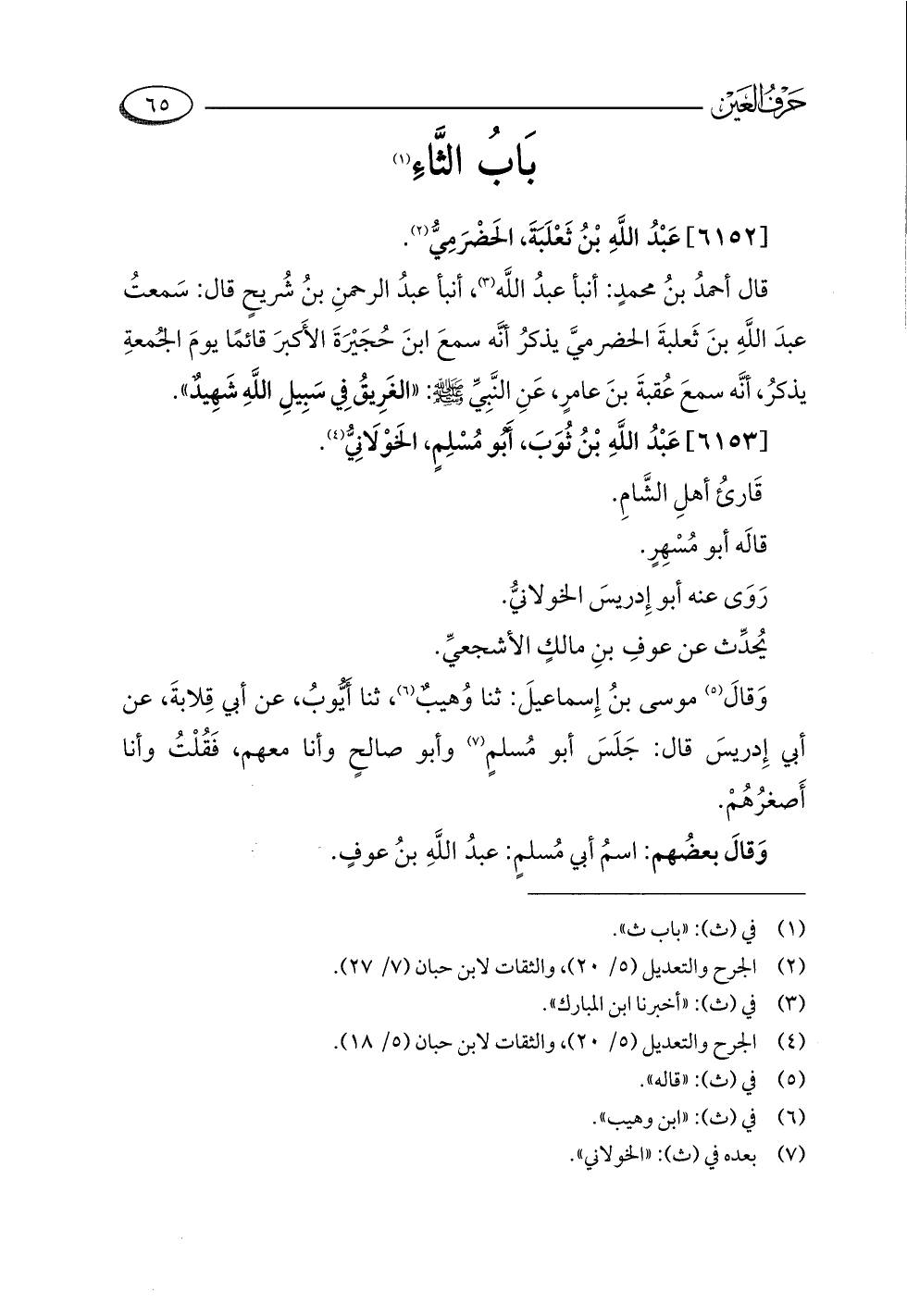 [٦١٥٣] عَبْدُ اللَّهِ بْنُ ثُوَبَ، أَبُو مُسْلِمٍ، الخَوْلَانِيُّ (¬٤).