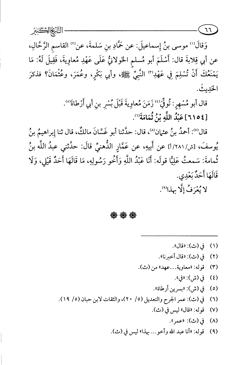 [٦١٥٤] عَبْدُ اللَّهِ بْنُ ثُمَامَةَ (¬٦).