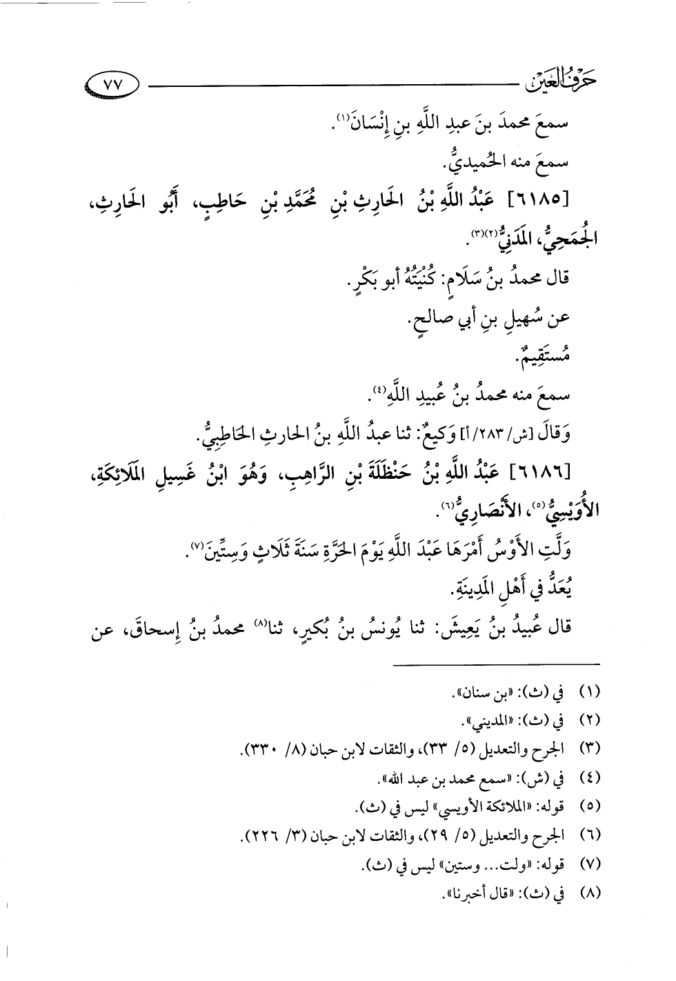 (¬٦) الجرح والتعديل (٥/ ٢٩)، والثقات لابن حبان (٣/ ٢٢٦).