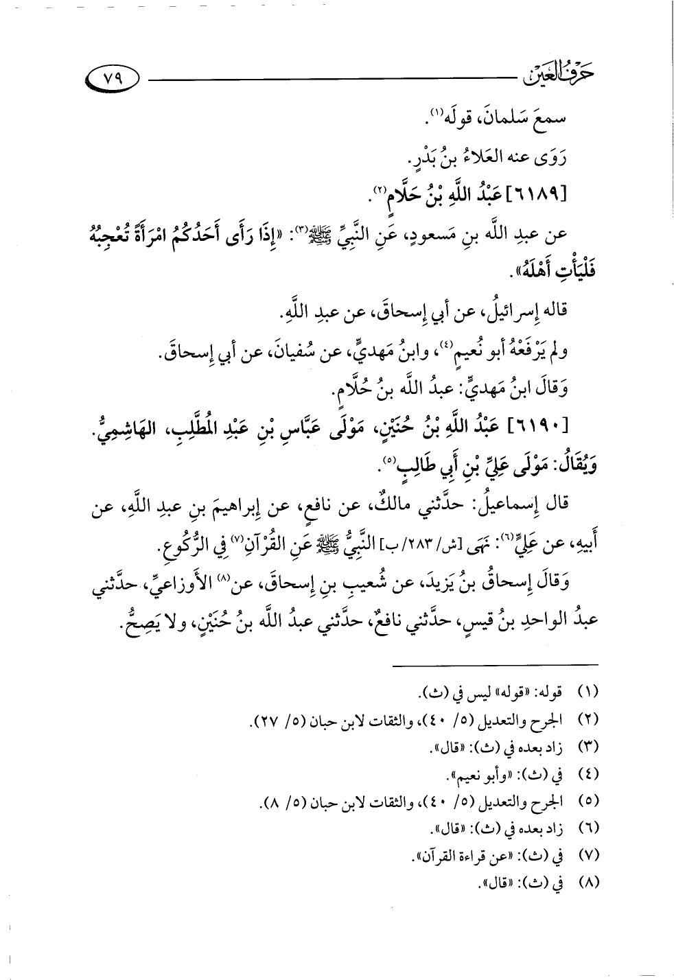 (¬٥) الجرح والتعديل (٥/ ٤٠)، والثقات لابن حبان (٥/ ٨).