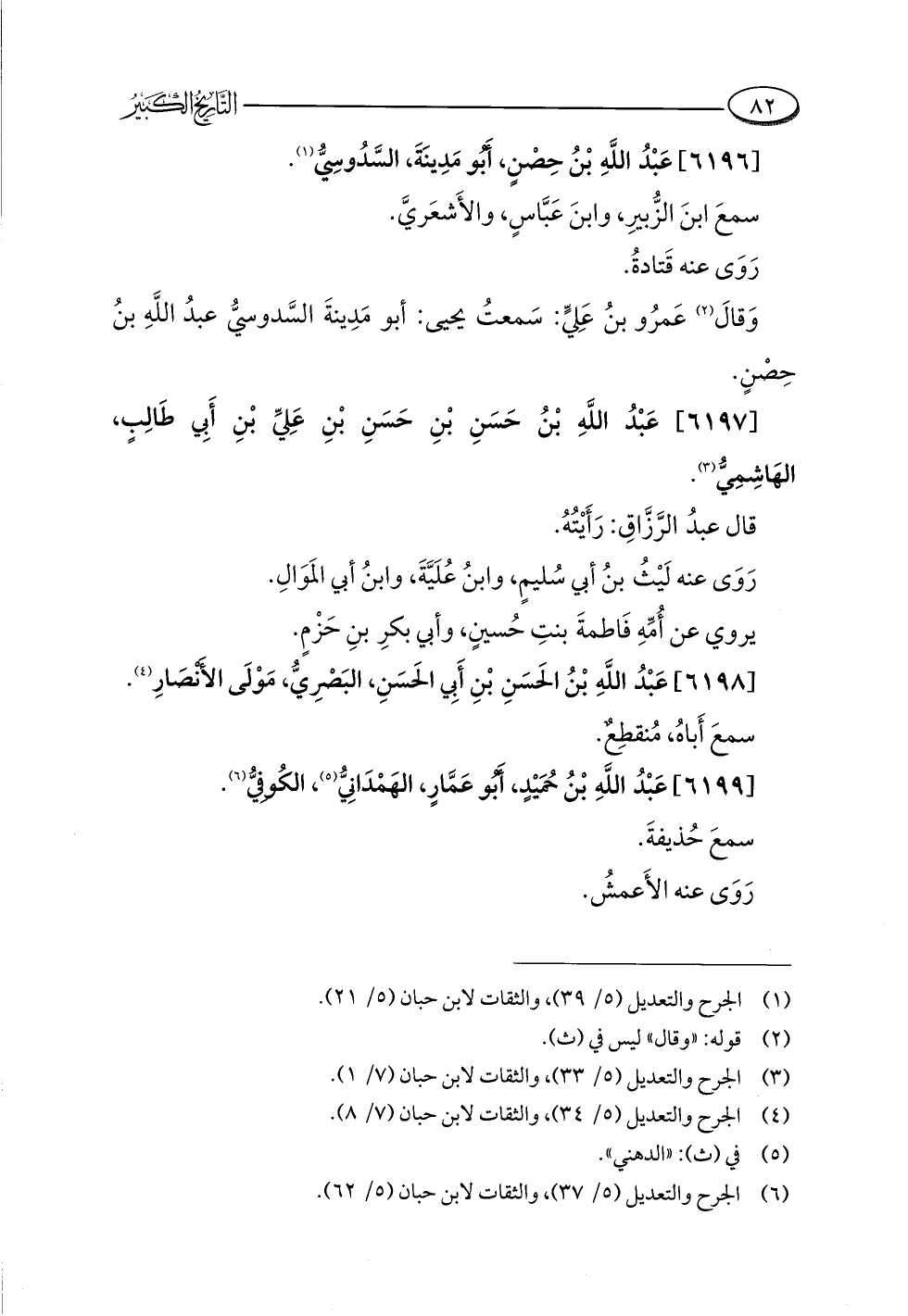 كتاب التاريخ الكبير للبخاري - ت الدباسي والنحال (اسم الجزء: 6)