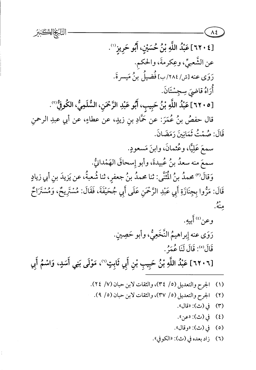 كتاب التاريخ الكبير للبخاري - ت الدباسي والنحال (اسم الجزء: 6)