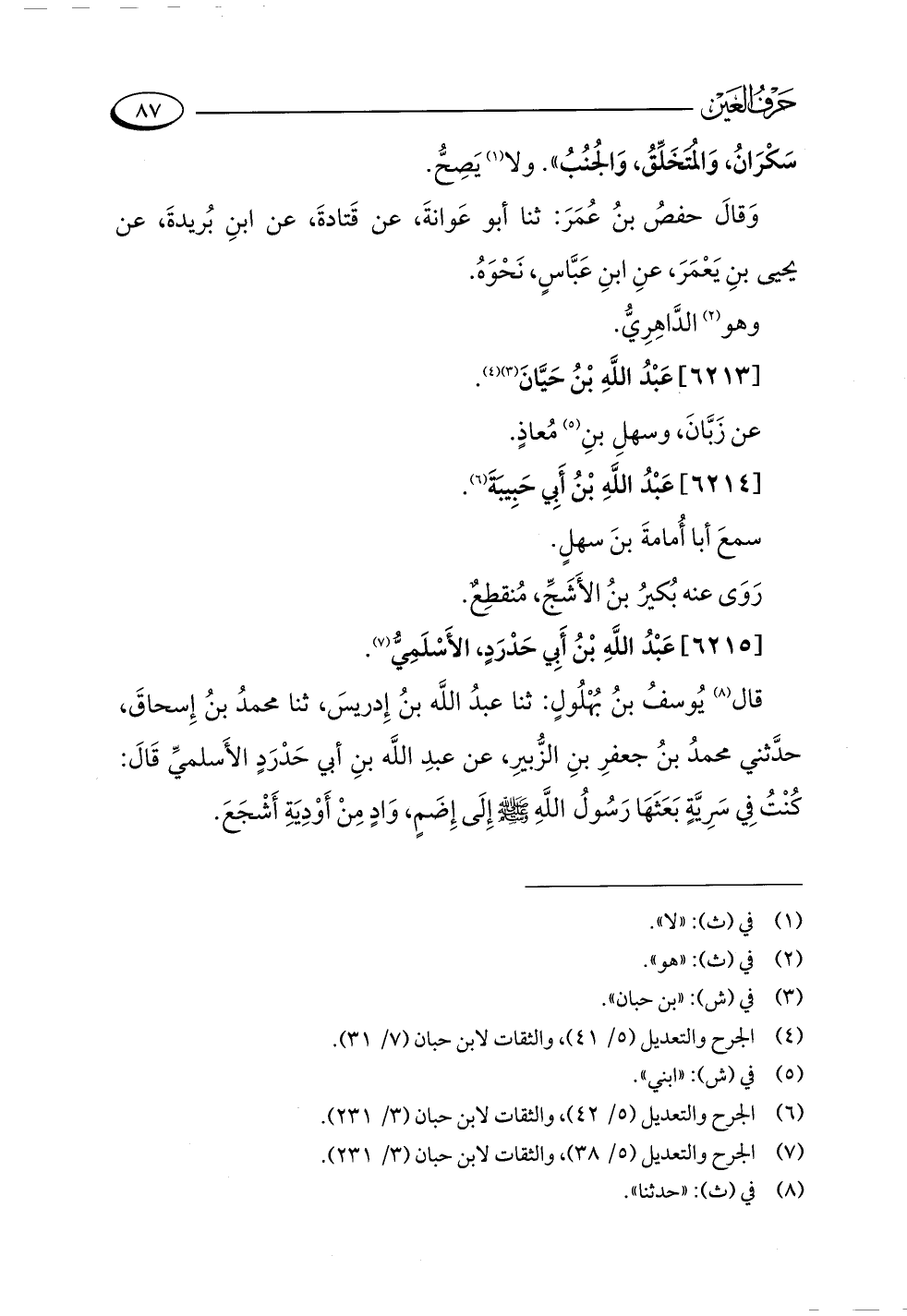 (¬٧) الجرح والتعديل (٥/ ٣٨)، والثقات لابن حبان (٣/ ٢٣١).