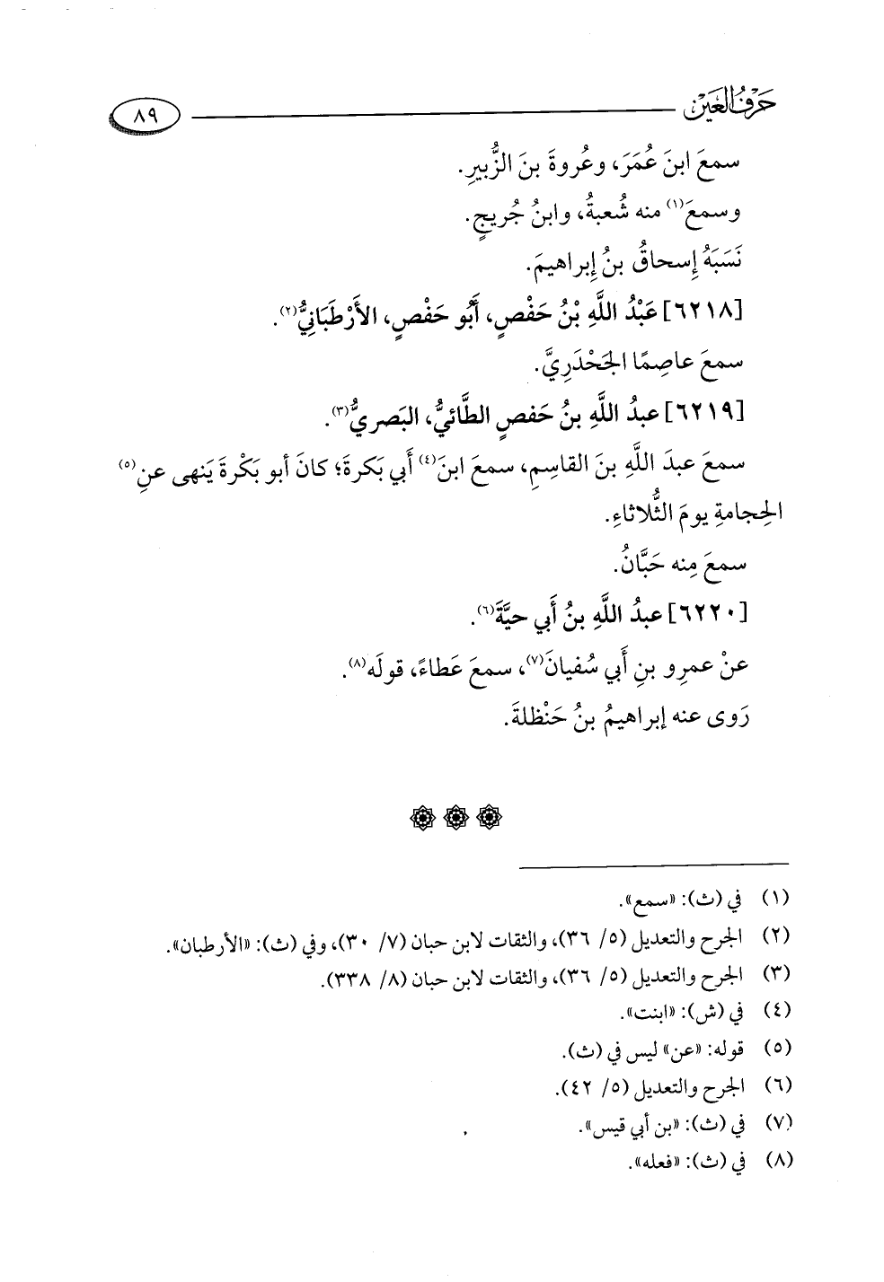 (¬٣) الجرح والتعديل (٥/ ٣٦)، والثقات لابن حبان (٨/ ٣٣٨).