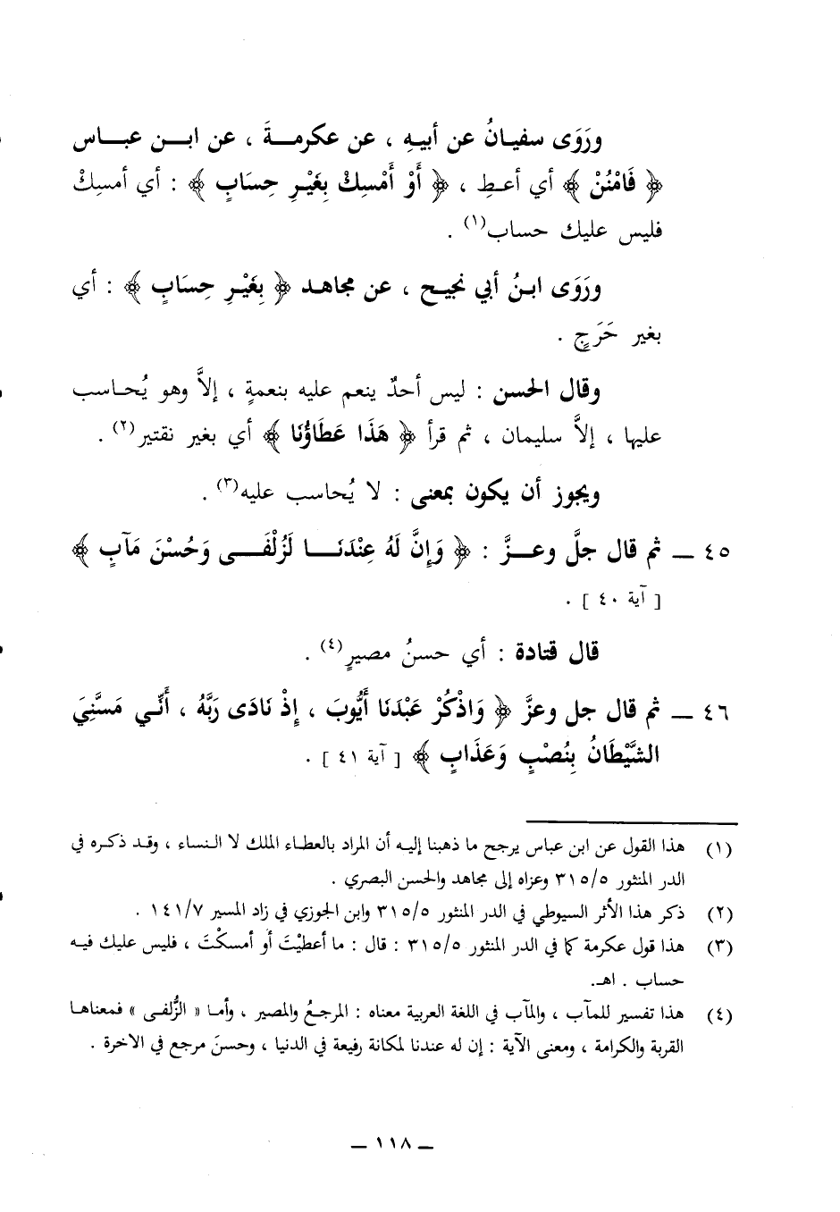 وروى سفيان عن ابيه عن عكرمة عن ابن عباس (فامنن) أي أعط أو أمسك بغير حساب أي أمسك فليس عليك حساب وروى ابن أبي نجيح عن مجاهد (بغير حساب) أي بغير حرج