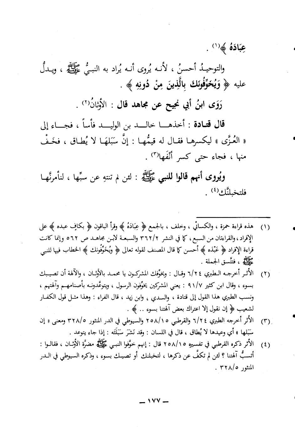 عباده) والتوحيد أحسن لأنه يروى أنه يراد به النبي صلى الله عليه وسلم ويدل عليه (ويخوفونك بالذين من دونه) روى ابن أبي نجيح عن مجاهد قال الأوثان قال قتادة أخذها خالد بن الوليد فأسا فجاء إلى