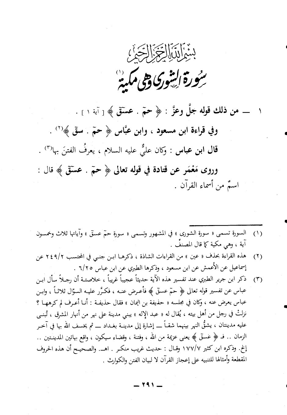 بسم الله الرحمن الرحيم سورة الشورى وهي مكية 1 - من ذلك قوله جل وعز (حم.