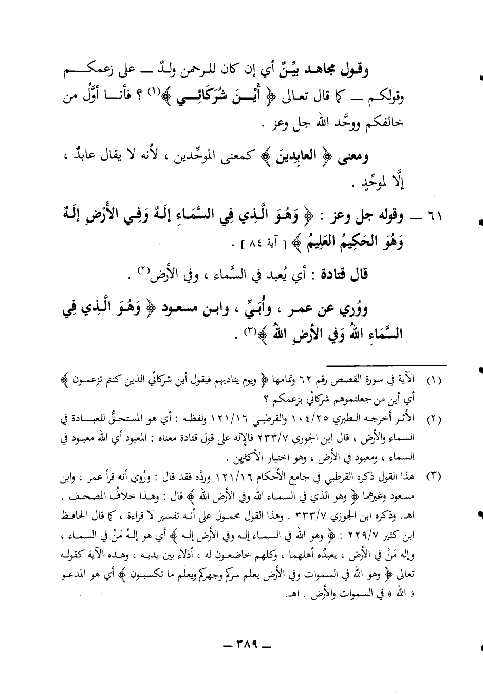 وقول مجاهد بين أي إن كان للرحمن ولد على زعمكم وقولكم كما قال تعالى (أين شركائي) فانا أول من خالفكم ووحد الله جل وعز ومعنى (العابدين) كمعنى الموحدين لأنه لا يقال عابد إلا لموحد 61 - وقوله جل وعز (وهو الذي في السماء إله وفي الأرض إله وهو الحكيم العليم) (آية 84) قال قتادة أي يعبد في السماء وفي الأرض ووري عن عمر وأبي وابن مسعود (وهو الذي في السماء الله وفي الأرض الله)