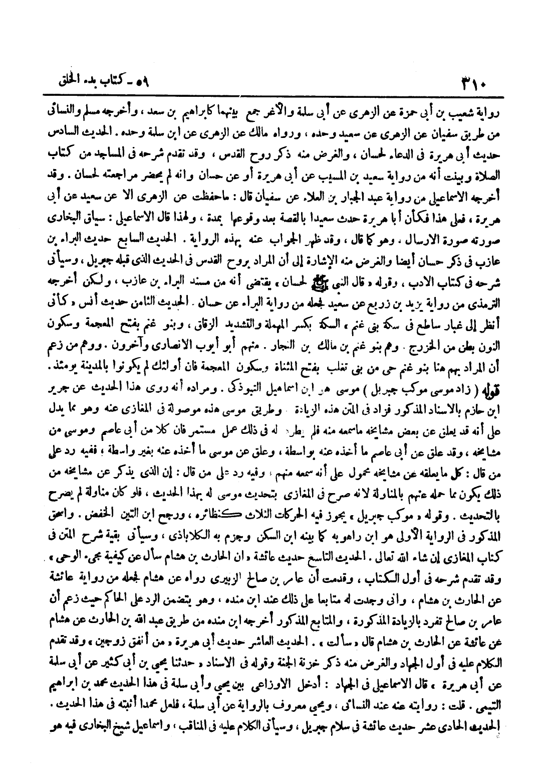 [3216] فِي الْإِسْنَادِ حَدَّثَنَا يَحْيَى بْنِ أَبِي كَثِيرٍ عَنْ أَبِي سَلَمَةَ عَنْ أَبِي هُرَيْرَةَ قَالَ الْإِسْمَاعِيلِيُّ فِي الْجِهَادِ أَدْخَلَ الْأَوْزَاعِيُّ بَيْنَ يَحْيَى وَأَبِي سَلَمَةَ فِي هَذَا الْحَدِيثِ مُحَمَّدَ بْنَ إِبْرَاهِيمَ التَّيْمِيَّ قُلْتُ رِوَايَتُهُ عَنْهُ عِنْدَ النَّسَائِيِّ وَيَحْيَى مَعْرُوفٌ بِالرِّوَايَةِ عَنْ أَبِي سَلَمَةَ فَلَعَلَّ مُحَمَّدًا أَثْبَتَهُ فِي هَذَا الْحَدِيثِ الْحَدِيثُ الْحَادِي عَشَرَ حَدِيثُ عَائِشَةَ فِي سَلَامِ جِبْرِيلَ وَسَيَأْتِي الْكَلَامُ عَلَيْهِ فِي الْمَنَاقِبِ وَإِسْمَاعِيل شيخ البُخَارِيّ فِيهِ هُوَ بن أبي أويس وَسليمَان هُوَ بن بِلَال وَيُونُس هُوَ بن يَزِيدَ الْأَيْلِيُّ وَقَدْ خَالَفَهُ مَعْمَرٌ عَنِ الزُّهْرِيِّ فِي إِسْنَادِهِ فَقَالَ عَنْ عُرْوَةَ عَنْ عَائِشَةَ أَخْرَجَهُ النَّسَائِيُّ وَقَالَ هَذَا خَطَأٌ وَالصَّوَابُ رِوَايَةُ يُونُس الحَدِيث الثَّانِي عشر حَدِيث بن عَبَّاسٍ فِي نُزُولِ قَوْلِهِ تَعَالَى