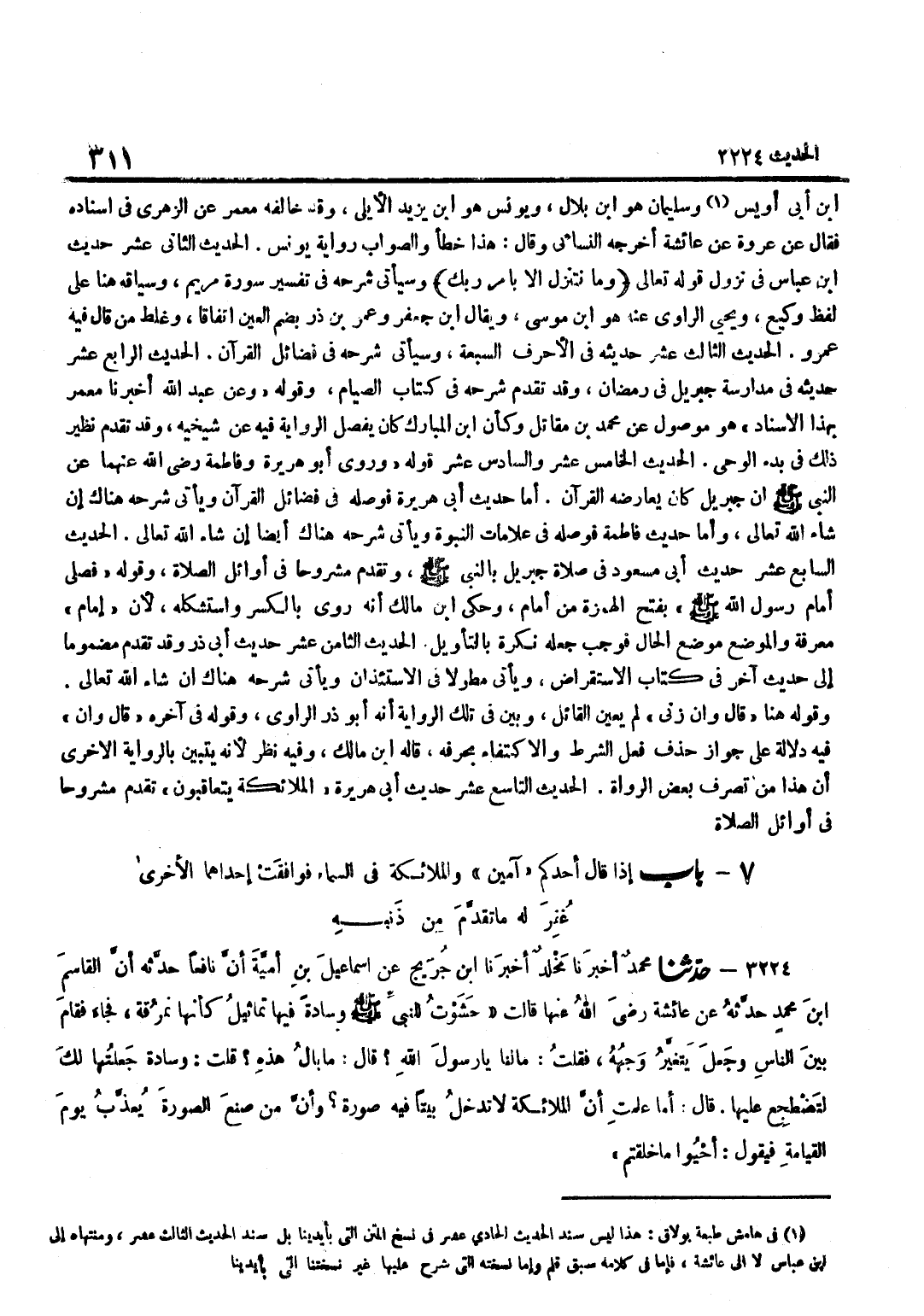 [3218] وَمَا نَتَنَزَّل الا بِأَمْر رَبك وَسَيَأْتِي شَرْحُهُ فِي تَفْسِيرِ سُورَةِ مَرْيَمَ وَسِيَاقُهُ هُنَا عَلَى لَفْظِ وَكِيعٍ وَيَحْيَى الرَّاوِي عَنْهُ هُوَ بن مُوسَى وَيُقَال بن جَعْفَرٍ وَعُمَرُ بْنُ ذَرٍّ بِضَمِّ الْعَيْنِ اتِّفَاقًا وَغَلِطَ مَنْ قَالَ فِيهِ عَمْرٌو الْحَدِيثُ الثَّالِثَ عَشَرَ حَدِيثُهُ فِي الْأَحْرُفِ السَّبْعَةِ وَسَيَأْتِي شَرْحُهُ فِي فَضَائِلِ الْقُرْآنِ الْحَدِيثُ الرَّابِعَ عَشَرَ حَدِيثُهُ فِي مُدَارَسَةِ جِبْرِيلَ فِي رَمَضَانَ وَقَدْ تَقَدَّمَ شَرْحُهُ فِي كِتَابِ الصِّيَامِ وَقَوْلُهُ