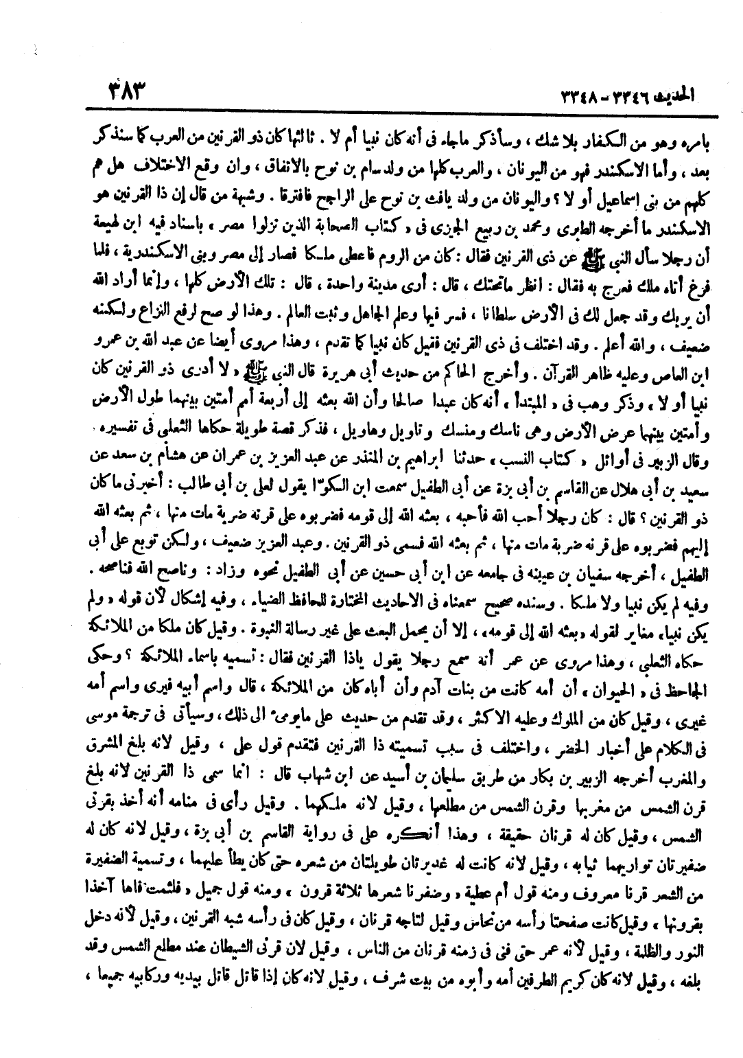 [4] بِأَمْرِهِ وَهُوَ مِنَ الْكُفَّارِ بِلَا شَكٍّ وَسَأَذْكُرُ مَا جَاءَ فِي أَنَّهُ كَانَ نَبِيًّا أَمْ لَا ثَالِثُهَا كَانَ ذُو الْقَرْنَيْنِ مِنَ الْعَرَبِ كَمَا سَنَذْكُرُ بَعْدُ وَأَمَّا الْإِسْكَنْدَرُ فَهُوَ مِنَ الْيُونَانِ وَالْعَرَبُ كُلُّهَا مِنْ وَلَدِ سَامِ بْنِ نُوحٍ بِالِاتِّفَاقِ وَإِنْ وَقَعَ الِاخْتِلَافُ هَلْ هُمْ كُلُّهُمْ مِنْ بَنِي إِسْمَاعِيلَ أَوْ لَا وَالْيُونَانُ مِنْ وَلَدِ يَافِثِ بْنِ نُوحٍ عَلَى الرَّاجِحِ فَافْتَرَقَا وَشُبْهَةُ مَنْ قَالَ إِنَّ ذَا الْقَرْنَيْنِ هُوَ الْإِسْكَنْدَرُ مَا أَخْرَجَهُ الطَّبَرِيُّ وَمُحَمَّدُ بْنُ رَبِيعٍ الْجِيزِيُّ فِي كِتَابِ الصَّحَابَةِ الَّذِينَ نَزَلُوا مصر بِإِسْنَاد فِيهِ بن لَهِيعَةَ أَنَّ رَجُلًا سَأَلَ النَّبِيَّ صَلَّى اللَّهُ عَلَيْهِ وَسَلَّمَ عَنِ ذِي الْقَرْنَيْنِ فَقَالَ كَانَ مِنَ الرُّومِ فَأُعْطِيَ مُلْكًا فَصَارَ إِلَى مِصْرَ وَبَنَى الْإِسْكَنْدَرِيَّةَ فَلَمَّا فَرَغَ أَتَاهُ مَلَكٌ فَعَرَجَ بِهِ فَقَالَ انْظُرْ مَا تَحْتَكَ قَالَ أَرَى مَدِينَةً وَاحِدَةً قَالَ تِلْكَ الْأَرْضُ كُلُّهَا وَإِنَّمَا أَرَادَ اللَّهُ أَنْ يُرِيَكَ وَقَدْ جَعَلَ لَكَ فِي الْأَرْضِ سُلْطَانًا فَسِرْ فِيهَا وَعَلِّمِ الْجَاهِلَ وَثَبِّتِ الْعَالِمَ وَهَذَا لَوْ صَحَّ لَرَفَعَ النِّزَاعَ وَلَكِنَّهُ ضَعِيفٌ وَاللَّهُ أَعْلَمُ وَقَدِ اخْتُلِفَ فِي ذِي الْقَرْنَيْنِ فَقِيلَ كَانَ نَبِيًّا كَمَا تَقَدَّمَ وَهَذَا مَرْوِيٌّ أَيْضًا عَنْ عَبْدِ اللَّهِ بْنِ عَمْرِو بْنِ الْعَاصِ وَعَلَيْهِ ظَاهِرُ الْقُرْآنِ وَأَخْرَجَ الْحَاكِمُ مِنْ حَدِيثِ أَبِي هُرَيْرَةَ قَالَ النَّبِيُّ صَلَّى اللَّهُ عَلَيْهِ وَسَلَّمَ لَا أَدْرِي ذُو الْقَرْنَيْنِ كَانَ نَبِيًّا أَوْ لَا وَذَكَرَ وَهْبٌ فِي الْمُبْتَدَإِ أَنَّهُ كَانَ عَبْدًا صَالِحًا وَأَنَّ اللَّهَ بَعَثَهُ إِلَى أَرْبَعَةِ أُمَمٍ أُمَّتَيْنِ بَيْنَهُمَا طُولُ الْأَرْضِ وَأُمَّتَيْنِ بَيْنَهُمَا عَرْضُ الْأَرْضِ وَهِيَ نَاسِكُ وَمَنْسَكُ وَتَأْوِيلُ وَهَاوِيلُ فَذَكَرَ قِصَّةً طَوِيلَةً حَكَاهَا الثَّعْلَبِيُّ فِي تَفْسِيرِهِ وَقَالَ الزُّبَيْرُ فِي أَوَائِلِ كِتَابِ النَّسَبِ حَدَّثَنَا إِبْرَاهِيمُ بْنُ الْمُنْذِرِ عَنْ عَبْدِ الْعَزِيزِ بْنِ عِمْرَانَ عَنْ هِشَامِ بْنِ سَعْدٍ عَنْ سَعِيدِ بْنِ أَبِي هِلَالٍ عَنِ الْقَاسِمِ بْنِ أَبِي بَزَّةَ عَنْ أَبِي الطُّفَيْلِ سَمِعت بن الْكَوَّا يَقُولُ لِعَلِيِّ بْنِ أَبِي طَالِبٍ أَخْبِرْنِي مَا كَانَ ذُو الْقَرْنَيْنِ قَالَ كَانَ رَجُلًا أَحَبَّ اللَّهَ فَأَحَبَّهُ بَعَثَهُ اللَّهُ إِلَى قَوْمِهِ فَضَرَبُوهُ عَلَى قَرْنِهِ ضَرْبَةً مَاتَ مِنْهَا ثُمَّ بَعَثَهُ اللَّهُ إِلَيْهِمْ فَضَرَبُوهُ عَلَى قَرْنِهِ ضَرْبَةً مَاتَ مِنْهَا ثمَّ بَعثه الله فَسمى ذُو الْقَرْنَيْنِ وَعَبْدُ الْعَزِيزِ ضَعِيفٌ وَلَكِنْ تُوبِعَ عَلَى أَبِي الطُّفَيْلِ أَخْرَجَهُ سُفْيَانُ بْنُ عُيَيْنَةَ فِي جَامعه عَن بن أَبِي حُسَيْنٍ عَنْ أَبِي الطُّفَيْلِ نَحْوَهُ وَزَادَ وَنَاصَحَ اللَّهَ فَنَاصَحَهُ وَفِيهِ لَمْ يَكُنْ نَبِيًّا وَلَا مَلَكًا وَسَنَدُهُ صَحِيحٌ سَمِعْنَاهُ فِي الْأَحَادِيثِ الْمُخْتَارَةِ لِلْحَافِظِ الضِّيَاءِ وَفِيهِ إِشْكَالٌ لِأَنَّ قَوْلَهُ ولَمْ يَكُنْ نَبِيًّا مُغَايِرٌ لِقَوْلِهِ بَعَثَهُ اللَّهُ إِلَى قَوْمِهِ إِلَّا أَنْ يُحْمَلَ الْبَعْثُ عَلَى غَيْرِ رِسَالَةِ النُّبُوَّةِ وَقِيلَ كَانَ مَلَكًا مِنَ الْمَلَائِكَةِ حَكَاهُ الثَّعْلَبِيُّ وَهَذَا مَرْوِيٌّ عَنْ عُمَرَ أَنه سمع رجلا يَقُول يَاذَا الْقَرْنَيْنِ فَقَالَ تُسَمِّيهِ بِأَسْمَاءِ الْمَلَائِكَةِ وَحَكَى الْجَاحِظُ فِي الْحَيَوَانِ أَنَّ 