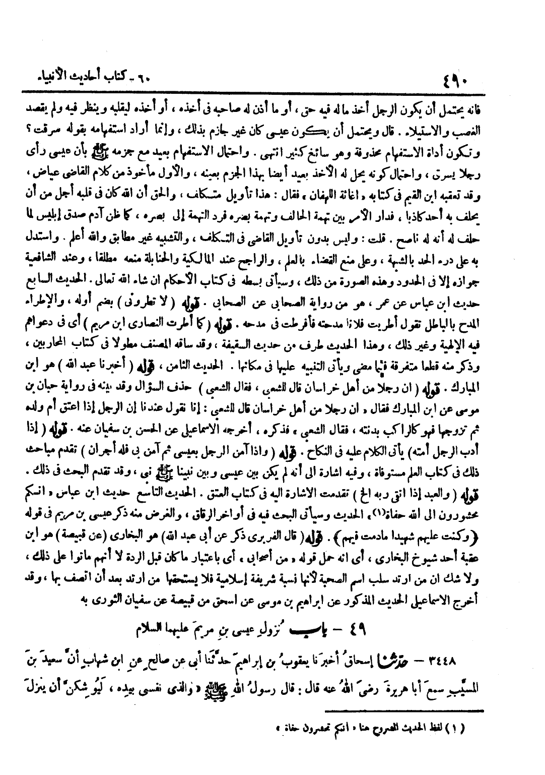 [3446] قَوْلُهُ أخبرنَا عبد الله هُوَ بن الْمُبَارَكِ قَوْلُهُ إِنَّ رَجُلًا مِنْ أَهْلِ خُرَاسَانَ قَالَ لِلشَّعْبِيِّ فَقَالَ الشَّعْبِيُّ حَذَفَ السُّؤَالَ وَقَدْ بَيَّنَهُ فِي رِوَايَةِ حِبَّانَ بْنِ مُوسَى عَنِ بن الْمُبَارَكِ فَقَالَ إِنَّ رَجُلًا مِنْ أَهْلِ خُرَاسَانَ قَالَ لِلشَّعْبِيِّ إِنَّا نَقُولُ عِنْدَنَا إِنَّ الرَّجُلَ إِذَا أَعْتَقَ أُمَّ وَلَدِهِ ثُمَّ تَزَوَّجَهَا فَهُوَ كَالرَّاكِبِ بَدَنَتَهُ فَقَالَ الشَّعْبِيُّ فَذَكَرَهُ أَخْرَجَهُ الْإِسْمَاعِيلِيُّ عَنِ الْحَسَنِ بْنِ سُفْيَانَ عَنْهُ قَوْلُهُ إِذَا أَدَّبَ الرَّجُلُ أَمَتَهُ يَأْتِي الْكَلَامُ عَلَيْهِ فِي النِّكَاحِ قَوْلُهُ وَإِذَا آمَنَ الرَّجُلُ بِعِيسَى ثُمَّ آمَنَ بِي فَلَهُ أَجْرَانِ تَقَدَّمَ مَبَاحِثُ ذَلِكَ فِي كِتَابِ الْعِلْمِ مُسْتَوْفَاةٌ وَفِيهِ إِشَارَةٌ إِلَى أَنَّهُ لَمْ يَكُنْ بَيْنَ عِيسَى وَبَيْنَ نَبِيِّنَا صَلَّى اللَّهُ عَلَيْهِ وَسَلَّمَ نَبِيٌّ وَقَدْ تَقَدَّمَ الْبَحْثُ فِي ذَلِكَ قَوْلُهُ وَالْعَبْدُ إِذَا اتَّقَى رَبَّهُ إِلَخْ تَقَدَّمَتِ الْإِشَارَةُ إِلَيْهِ فِي كِتَابِ الْعتْق الحَدِيث التَّاسِع حَدِيث بن عَبَّاسٍ إِنَّكُمْ مَحْشُورُونَ إِلَى اللَّهِ حُفَاةً الْحَدِيثَ وَسَيَأْتِي الْبَحْثُ فِيهِ فِي أَوَاخِرِ الرِّقَاقِ وَالْغَرَضُ مِنْهُ ذكر عِيسَى بن مَرْيَمَ فِي