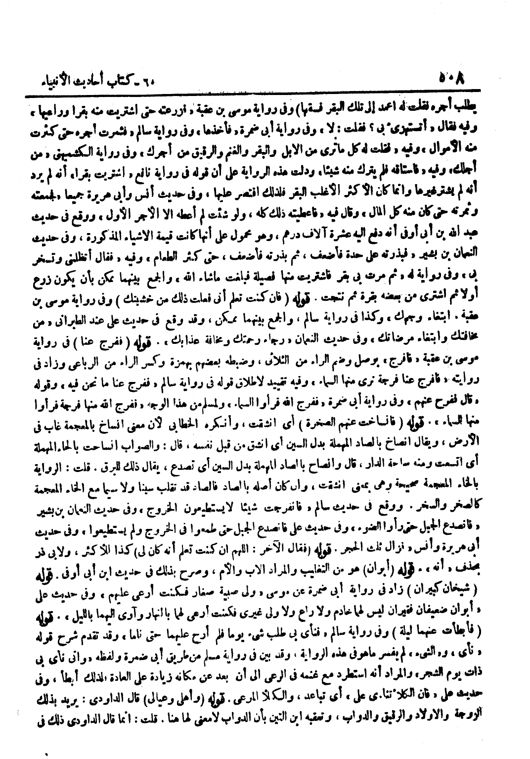 يَطْلُبُ أَجْرَهُ فَقُلْتُ لَهُ اعْمَدْ إِلَى تِلْكَ الْبَقَرِ فَسُقْهَا وَفِي رِوَايَةِ مُوسَى بْنِ عُقْبَةَ فَزَرَعْتُهُ حَتَّى اشْتَرَيْتُ مِنْهُ بَقَرًا وَرَاعِيَهَا وَفِيهِ فَقَالَ أَتَسْتَهْزِئُ بِي فَقُلْتُ لَا وَفِي رِوَايَةِ أَبِي ضَمْرَةَ فَأَخَذَهَا وَفِي رِوَايَةِ سَالِمٍ فَثَمَّرْتُ أَجْرَهُ حَتَّى كَثُرَتْ مِنْهُ الْأَمْوَالُ وَفِيهِ فَقُلْتُ لَا وَفِي رِوَايَةِ أَبِي ضَمْرَةَ فَأَخَذَهَا وَفِي رِوَايَةِ سَالِمٍ فَثَمَّرْتُ أَجْرَهُ حَتَّى كَثُرَتْ مِنْهُ الْأَمْوَالُ وَفِيهِ فَقُلْتُ لَهُ كُلُّ مَا تَرَى مِنَ الْإِبِلِ وَالْبَقَرِ وَالْغَنَمِ وَالرَّقِيقِ مِنْ أَجْرِكَ وَفِي رِوَايَةِ الْكُشْمِيهَنِيِّ مِنْ أَجْلِكَ وَفِيهِ فَاسْتَاقَهُ فَلَمْ يَتْرُكْ مِنْهُ شَيْئًا وَدَلَّتْ هَذِهِ الرِّوَايَةُ عَلَى أَنَّ قَوْلَهُ فِي رِوَايَةِ نَافِعٍ اشْتَرَيْتُ بَقَرًا أَنَّهُ لَمْ يُرِدْ أَنَّهُ لَمْ يَشْتَرِ غَيْرَهَا وَإِنَّمَا كَانَ الْأَكْثَرُ الْأَغْلَبُ الْبَقَرُ فَلِذَلِكَ اقْتَصَرَ عَلَيْهَا وَفِي حَدِيثِ أَنَسٍ وَأَبِي هُرَيْرَةَ جَمِيعًا فَجَمَعْتُهُ وَثَمَّرَتُهُ حَتَّى كَانَ مِنْهُ كُلُّ الْمَالِ وَقَالَ فِيهِ فَأَعْطَيْتُهُ ذَلِكَ كُلَّهُ وَلَوْ شِئْتُ لَمْ أُعْطِهِ إِلَّا الْأَجْرَ الْأَوَّلَ وَوَقَعَ فِي حَدِيثِ عَبْدِ اللَّهِ بْنِ أَبِي أَوْفَى أَنَّهُ دَفَعَ إِلَيْهِ عَشَرَةَ آلَافِ دِرْهَمٍ وَهُوَ مَحْمُولٌ عَلَى أَنَّهَا كَانَتْ قِيمَةَ الْأَشْيَاءِ الْمَذْكُورَةِ وَفِي حَدِيثِ النُّعْمَانِ بْنِ بَشِيرٍ فَبَذَرْتُهُ عَلَى حِدَةٍ فَأَضْعَفَ ثُمَّ بَذَرْتُهُ فَأَضْعَفَ حَتَّى كَثُرَ الطَّعَامُ وَفِيهِ فَقَالَ أَتَظْلِمُنِي وَتَسْخَرُ بِي وَفِي رِوَايَةٍ لَهُ ثُمَّ مَرَّتْ بِي بَقَرٌ فَاشْتَرَيْتُ مِنْهَا فَصِيلَةً فَبَلَغَتْ مَا شَاءَ اللَّهُ وَالْجَمْعُ بَيْنَهُمَا مُمْكِنٌ بِأَنْ يَكُونَ زَرَعَ أَوَّلًا ثُمَّ اشْتَرَى مِنْ بَعْضِهِ بَقَرَةً ثُمَّ نُتِجَتْ قَوْلُهُ فَإِنْ كُنْتَ تَعْلَمُ أَنِّي فَعَلْتُ ذَلِكَ مِنْ خَشْيَتِكَ وَفِي رِوَايَةِ مُوسَى بْنِ عُقْبَةَ ابْتِغَاءَ وَجْهِكَ وَكَذَا فِي رِوَايَةِ سَالِمٍ وَالْجَمْعُ بَيْنَهُمَا مُمْكِنٌ وَقَدْ وَقَعَ فِي حَدِيثِ عَلِيٍّ عِنْدَ الطَّبَرَانِيِّ مِنْ مَخَافَتِكَ وَابْتِغَاءَ مَرْضَاتِكَ وَفِي حَدِيثِ النُّعْمَانِ رَجَاءَ رَحْمَتِكَ وَمَخَافَةَ عَذَابِكَ قَوْلُهُ فَفَرِّجْ عَنَّا فِي رِوَايَةِ مُوسَى بْنِ عُقْبَةَ فَافْرُجْ بِوَصْلٍ وَضَمِّ الرَّاءِ مِنَ الثُّلَاثِيِّ وَضَبَطَهُ بَعْضُهُمْ بِهَمْزَةٍ وَكَسْرِ الرَّاءِ مِنَ الرُّبَاعِيِّ وَزَادَ فِي رِوَايَتِهِ فَأَفْرِجْ عَنَّا فُرْجَةً نَرَى مِنْهَا السَّمَاءَ وَفِيهِ تَقْيِيدٌ لِإِطْلَاقِ قَوْلِهِ فِي رِوَايَةِ سَالِمٍ فَفَرِّجْ عَنَّا مَا نَحْنُ فِيهِ وَقَوْلُهُ قَالَ فَفُرِّجَ عَنْهُمْ وَفِي رِوَايَةِ أَبِي ضَمْرَةَ فَفَرَّجَ اللَّهُ فَرَأَوُا السَّمَاءَ وَلِمُسْلِمٍ مِنْ هَذَا الْوَجْهِ فَفَرَّجَ اللَّهُ مِنْهَا فُرْجَةً فَرَأَوْا مِنْهَا السَّمَاءَ قَوْلُهُ فَانْسَاخَتْ عَنْهُمُ الصَّخْرَةُ أَيِ انْشَقَّتْ وَأَنْكَرَهُ الْخَطَّابِيُّ لِأَنَّ مَعْنَى انْسَاخَ بِالْمُعْجَمَةِ غَابَ فِي الْأَرْضِ وَيُقَالُ انْصَاخَ بِالصَّادِ الْمُهْمَلَةِ بَدَلَ السِّينِ أَيِ انْشَقَّ مِنْ قِبَلِ نَفْسِهِ قَالَ وَالصَّوَابُ انْسَاحَتْ بِالْحَاءِ الْمُهْمَلَةِ أَيِ اتَّسَعَتْ وَمِنْهُ سَاحَةُ الدَّارِ قَالَ وَانْصَاحَ بِالصَّادِ الْمُهْمَلَةِ بَدَلَ السِّينِ أَيْ تَصَدَّعَ يُقَالُ ذَلِكَ لِلْبَرْقِ قُلْتُ الرِّوَايَةُ بِالْخَاءِ الْمُعْجَمَةِ صَحِيحَةٌ وَهِيَ بِمَعْنَى انْشَقَّتْ وَإِنْ كَانَ أَصْلُهُ بِالصَّادِ ف