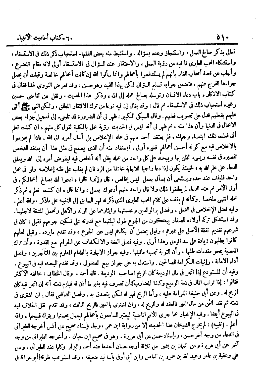 تَعَالَى بِذِكْرِ صَالِحِ الْعَمَلِ وَاسْتِنْجَازُ وَعْدِهِ بِسُؤَالِهِ وَاسْتَنْبَطَ مِنْهُ بَعْضُ الْفُقَهَاءِ اسْتِحْبَابَ ذِكْرِ ذَلِكَ فِي الِاسْتِسْقَاءِ وَاسْتَشْكَلَهُ الْمُحِبُّ الطَّبَرِيُّ لِمَا فِيهِ مِنْ رُؤْيَةِ الْعَمَلِ وَالِاحْتِقَارُ عِنْدَ السُّؤَالِ فِي الِاسْتِسْقَاءِ أَوْلَى لِأَنَّهُ مَقَامُ التَّضَرُّعِ وَأَجَابَ عَنْ قِصَّةِ أَصْحَابِ الْغَارِ بِأَنَّهُمْ لَمْ يَسْتَشْفِعُوا بِأَعْمَالِهِمْ وَإِنَّمَا سَأَلُوا اللَّهَ إِنْ كَانَتْ أَعْمَالُهُمْ خَالِصَةً وَقُبِلَتْ أَنْ يَجْعَلَ جَزَاءَهَا الْفَرَجُ عَنْهُمْ فَتَضَمَّنَ جَوَابُهُ تَسْلِيمَ السُّؤَالِ لَكِنْ بِهَذَا الْقَيْدِ وَهُوَ حَسَنٌ وَقَدْ تَعَرَّضَ النَّوَوِيُّ لِهَذَا فَقَالَ فِي كِتَابِ الْأَذْكَارِ بَابُ دُعَاءِ الْإِنْسَانِ وَتَوَسُّلِهِ بِصَالِحِ عَمَلِهِ إِلَى اللَّهِ وَذَكَرَ هَذَا الْحَدِيثَ وَنَقَلَ عَنِ الْقَاضِي حُسَيْنٍ وَغَيْرِهِ اسْتِحْبَابَ ذَلِكَ فِي الِاسْتِسْقَاءِ ثُمَّ قَالَ وَقَدْ يُقَالُ إِنَّ فِيهِ نَوْعًا مِنْ تَرْكِ الِافْتِقَارِ الْمُطْلَقِ وَلَكِنَّ النَّبِيَّ صَلَّى اللَّهُ عَلَيْهِ وَسَلَّمَ أَثْنَى عَلَيْهِمْ بِفِعْلِهِمْ فَدَلَّ عَلَى تَصْوِيبِ فِعْلِهِمْ وَقَالَ السُّبْكِيُّ الْكَبِيرُ ظهر لي أَن الضَّرُورَة قد تلجىء إِلَى تَعْجِيلِ جَزَاءِ بَعْضِ الْأَعْمَالِ فِي الدُّنْيَا وَأَنَّ هَذَا مِنْهُ ثُمَّ ظَهَرَ لِي أَنَّهُ لَيْسَ فِي الْحَدِيثِ رُؤْيَةُ عَمَلٍ بِالْكُلِّيَّةِ لِقَوْلِ كُلٍّ مِنْهُمْ إِنْ كُنْتَ تَعْلَمُ أَنِّي فَعَلْتُ ذَلِكَ ابْتِغَاءَ وَجْهِكَ فَلَمْ يَعْتَقِدْ أَحَدٌ مِنْهُمْ فِي عَمَلِهِ الْإِخْلَاصَ بَلْ أَحَالَ أَمْرَهُ إِلَى اللَّهِ فَإِذَا لَمْ يَجْزِمُوا بِالْإِخْلَاصِ فِيهِ مَعَ كَوْنِهِ أَحْسَنَ أَعْمَالِهِمْ فَغَيْرُهُ أَوْلَى فَيُسْتَفَادُ مِنْهُ أَنَّ الَّذِي يَصْلُحُ فِي مِثْلِ هَذَا أَنْ يَعْتَقِدَ الشَّخْصُ تَقْصِيرَهُ فِي نَفْسِهِ وَيُسِيءَ الظَّنَّ بِهَا وَيَبْحَثَ عَلَى كُلِّ وَاحِدٍ مِنْ عَمَلِهِ يَظُنُّ أَنَّهُ أَخْلَصَ فِيهِ فَيُفَوِّضُ أَمْرَهُ إِلَى اللَّهِ وَيُعَلِّقُ الدُّعَاءَ عَلَى عِلْمِ اللَّهِ بِهِ فَحِينَئِذٍ يَكُونُ إِذَا دَعَا رَاجِيًا لِلْإِجَابَةِ خَائِفًا مِنَ الرَّدِّ فَإِنْ لَمْ يَغْلِبْ عَلَى ظَنِّهِ إِخْلَاصُهُ وَلَوْ فِي عَمَلٍ وَاحِدٍ فَلْيَقِفْ عِنْدَ حَده ويستحي أَنْ يَسْأَلَ بِعَمَلٍ لَيْسَ بِخَالِصٍ قَالَ وَإِنَّمَا قَالُوا ادْعُوا اللَّهَ بِصَالِحِ أَعْمَالِكُمْ فِي أَوَّلِ الْأَمْرِ ثُمَّ عِنْدَ الدُّعَاءِ لَمْ يُطْلِقُوا ذَلِكَ وَلَا قَالَ وَاحِدٌ مِنْهُمْ أَدْعُوكَ بِعَمَلِي وَإِنَّمَا قَالَ إِنْ كُنْتَ تَعْلَمُ ثُمَّ ذَكَرَ عَمَلَهُ انْتَهَى مُلَخَّصًا وَكَأَنَّهُ لَمْ يَقِفْ عَلَى كَلَامِ الْمُحِبِّ الطَّبَرِيِّ الَّذِي ذَكَرْتُهُ فَهُوَ السَّابِقُ إِلَى التَّنْبِيهِ عَلَى مَا ذَكَرَ وَاللَّهُ أَعْلَمُ وَفِيهِ فَضْلُ الْإِخْلَاصِ فِي الْعَمَلِ وَفَضْلُ بِرِّ الْوَالِدَيْنِ وَخِدْمَتِهِمَا وَإِيثَارِهِمَا عَلَى الْوَلَدِ وَالْأَهْلِ وَتَحَمُّلِ الْمَشَقَّةِ لِأَجْلِهِمَا وَقَدِ اسْتُشْكِلَ تَرْكُهُ أَوْلَادَهُ الصِّغَارَ يَبْكُونَ مِنَ الْجُوعِ طُولَ لَيْلَتِهِمَا مَعَ قُدْرَتِهِ عَلَى تَسْكِينِ جُوعِهِمْ فَقِيلَ كَانَ فِي شَرْعِهِمْ تَقْدِيمُ نَفَقَةِ الْأَصْلِ عَلَى غَيْرِهِمْ وَقِيلَ يَحْتَمِلُ أَنَّ بُكَاءَهُمْ لَيْسَ عَنِ الْجُوعِ وَقَدْ تَقَدَّمَ مَا يَرُدُّهُ وَقِيلَ لَعَلَّهُمْ كَانُوا يَطْلُبُونَ زِيَادَةً عَلَى سَدِّ الرَّمَقِ وَهَذَا أَوْلَى وَفِيهِ فَضْلُ الْعِفَّةِ وَالِانْكِفَافِ عَنِ الْحَرَامِ مَعَ الْقُدْرَةِ وَأَنَّ تَرْكَ الْمَع