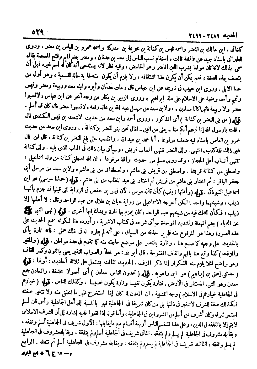 [3493] قَوْلُهُ حَدَّثَنِي إِسْحَاقُ بن إِبْرَاهِيم هُوَ بن رَاهَوَيْهِ قَوْلُهُ تَجِدُونَ النَّاسَ مَعَادِنَ أَيْ أُصُولًا مُخْتَلِفَةً وَالْمَعَادِنُ جَمْعُ مَعْدِنٍ وَهُوَ الشَّيْءُ الْمُسْتَقِرُّ فِي الْأَرْضِ فَتَارَةً يَكُونُ نَفِيسًا وَتَارَةً يَكُونُ خَسِيسًا وَكَذَلِكَ النَّاسُ قَوْلُهُ خِيَارُهُمْ فِي الْجَاهِلِيَّةِ خِيَارُهُمْ فِي الْإِسْلَامِ وَجْهُ التَّشْبِيهِ أَنَّ الْمَعْدِنَ لَمَّا كَانَ إِذَا اسْتُخْرِجَ ظَهَرَ مَا اخْتَفَى مِنْهُ وَلَا تَتَغَيَّرُ صِفَتُهُ فَكَذَلِكَ صِفَةُ الشَّرَفِ لَا تَتَغَيَّرُ فِي ذَاتِهَا بَلْ مَنْ كَانَ شَرِيفًا فِي الْجَاهِلِيَّةِ فَهُوَ بِالنِّسْبَةِ إِلَى أَهْلِ الْجَاهِلِيَّةِ رَأْسٌ فَإِنْ أَسْلَمَ اسْتَمَرَّ شَرَفُهُ وَكَانَ أَشْرَفَ مِمَّنْ أَسْلَمَ مِنَ الْمَشْرُوفِينَ فِي الْجَاهِلِيَّةِ وَأَمَّا قَوْلُهُ إِذَا فَقِهُوا فَفِيهِ إِشَارَةٌ إِلَى أَنَّ الشَّرَفَ الْإِسْلَامِيَّ لَا يَتِمُّ إِلَّا بِالتَّفَقُّهِ فِي الدِّينِ وَعَلَى هَذَا فَتَنْقَسِمُ النَّاسُ أَرْبَعَةَ أَقْسَامٍ مَعَ مَا يُقَابِلُهَا الْأَوَّلُ شَرِيفٌ فِي الْجَاهِلِيَّةِ أَسْلَمَ وَتَفَقَّهَ وَيُقَابِلُهُ مَشْرُوفٌ فِي الْجَاهِلِيَّةِ لَمْ يُسْلِمْ وَلَمْ يَتَفَقَّهْ الثَّانِي شَرِيفٌ فِي الْجَاهِلِيَّةِ أَسْلَمَ وَلَمْ يَتَفَقَّهْ وَيُقَابِلُهُ مَشْرُوفٌ فِي الْجَاهِلِيَّةِ لَمْ يُسْلِمْ وَتَفَقَّهَ الثَّالِثُ شَرِيفٌ فِي الْجَاهِلِيَّةِ لَمْ يُسْلِمْ وَلَمْ يَتَفَقَّهْ وَيُقَابِلُهُ مَشْرُوفٌ فِي الْجَاهِلِيَّةِ أَسْلَمَ ثُمَّ تَفَقَّهَ الرَّابِعُ