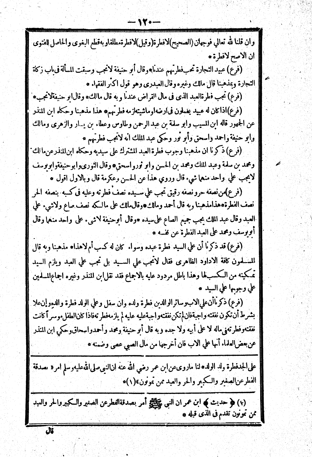 على الجد فطرة ولد الولد * لنا ماروى عن ابن عمر رضي الله عنه ان النبي صلى الله عليه وسلم امر (بصدقة الفطر عن الصغير والكبير والحر والعبد ممن تمونون) *