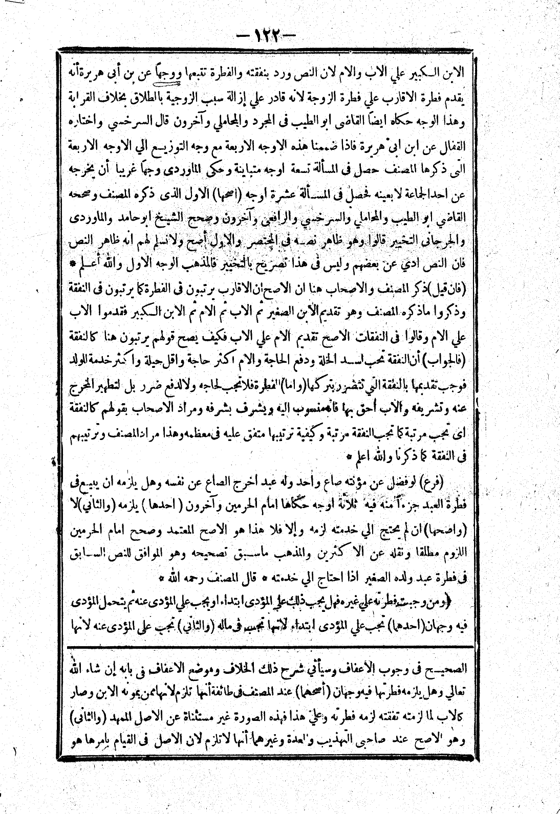 الصحيح في وجوب الاعفاف وسيأتي شرح ذلك الخلاف وموصع الاعفاف في بابه إن شاء الله تعالي وهل يلزمه فطرتها فيه وجهان (أصحهما) عند المصنف في طائفة أنها تلزم لانها ممن يمونه الابن وصار كالاب لما لزمته تفقته لزمه فطرته وعلي هذا فهذه الصورة غير مستثناة عن الاصل الممهد (والثانى) وهو الاصح عند صاحبي التهذيب والعدة وغيرهما أنها لا تلزم لان الاصل في القيام بامرها هو