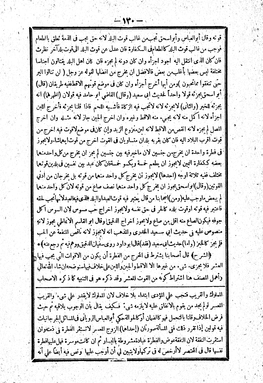 المملوك والقريب فتجب علي المؤدى ابتداء بلا خلاف لان المملوك لا يقدر علي شئ والقريب المعسر لو لم يجد من يقوم بالانفاق عليه لا يلزمه شئ فكيف يقال بان الوجوب يلاقيه ثم حيث فرض الخلاف وقلنا بالتحمل فهو كالضمان أو كالحوالة حكي أبو العباس الرويانى في المسائل الجرجانيات فيه قولين إذا تقرر ذلك ففى المسألة صورتان (إحداهما) الزوج المعسر لا تستقر الفطرة في ذمته وان استقرت النفقة لان النفقة عوض والفطرة عبادة مشروطة باليسار ثم ان كانت موسرة فهل عليها فطرة نفسها قال في المختصر لا أرخص له في تركها ولا يتبين لي أن أوجب عليها ونص فيه أيضا علي أنه