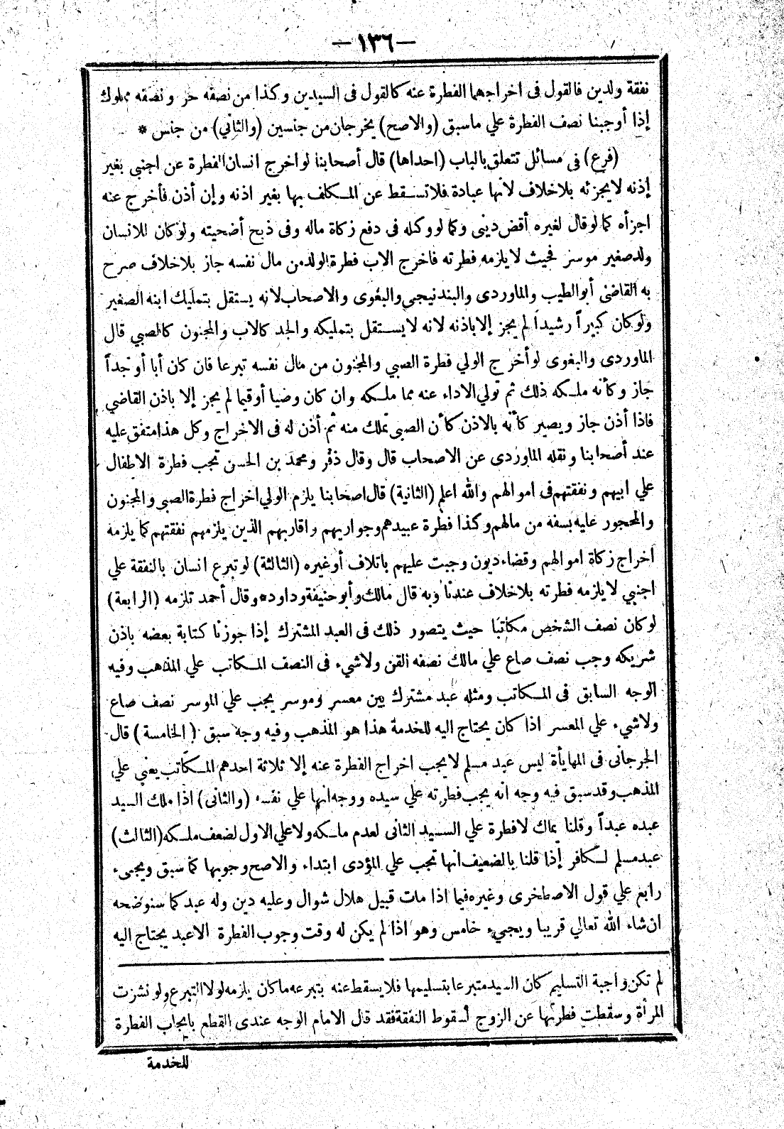 لم تكن واجبة التسليم كان السيد متبرعا بتسليمها فلا يسقط عنه بتبرعه ما كان يلزمه لولا التبرع ولو نشزت المرأة وسقطت فطرتها عن الزوج لسقوط النفقة فقد قال الامام الوجه عندي القطع بايجاب الفطرة