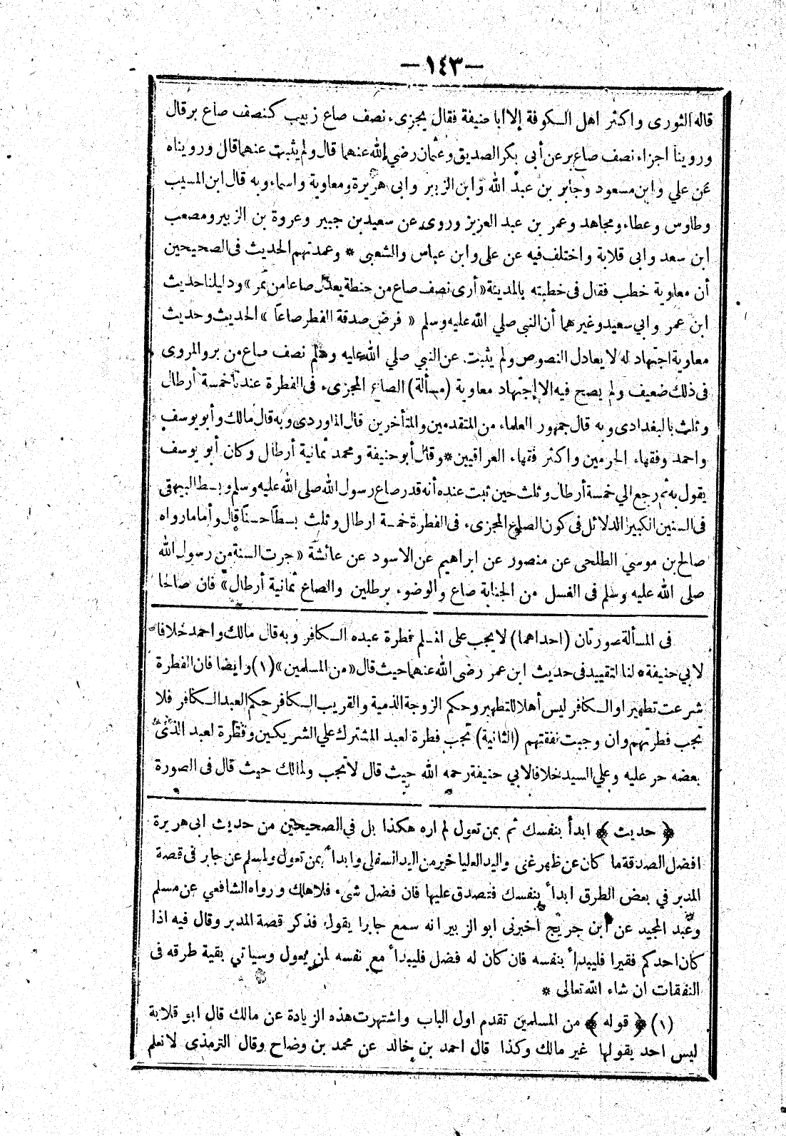 في المسألة صورتان (احداهما) لا يجب على المسلم فطرة عبده الكافر وبه قال مالك واحمد خلافا لابي حنيفة * لنا لتقييد في حديث ابن عمر رضى الله عنهما حيث قال (من المسلمين) وايضا فان الفطرة شرعت تطهير أو الكافر ليس أهلا للتطهير وحكم الزوجة الذمية والقريب الكافر حكم العبد الكافر فلا تجب فطرتهم وان وجبت نفقتهم (الثانية) تجب فطرة لعبد المشترك علي الشريكين وفطرة لعبد الذى بعضه حر عليه وعلي السيد خلافا لابي حنيفة رحمه الله حيث قال لا تجب ولمالك حيث قال في الصورة