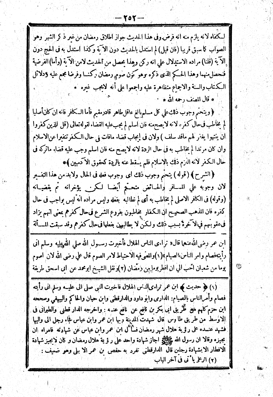 ابن عمر رضى الله عنهما قال " تراءى الناس الهلال فأخبرت رسول الله صلي الله عليه وسلم انى رأيته فصام وامر الناس بالصيام " والمعنى فيه الاحتياط لامر الصوم قال علي رضى الله لان اصوم يوما من شعبان احب من ان افطر يوما من رمضان ونقل الشيخ ابو محمد عن ابى اسحق طريقة