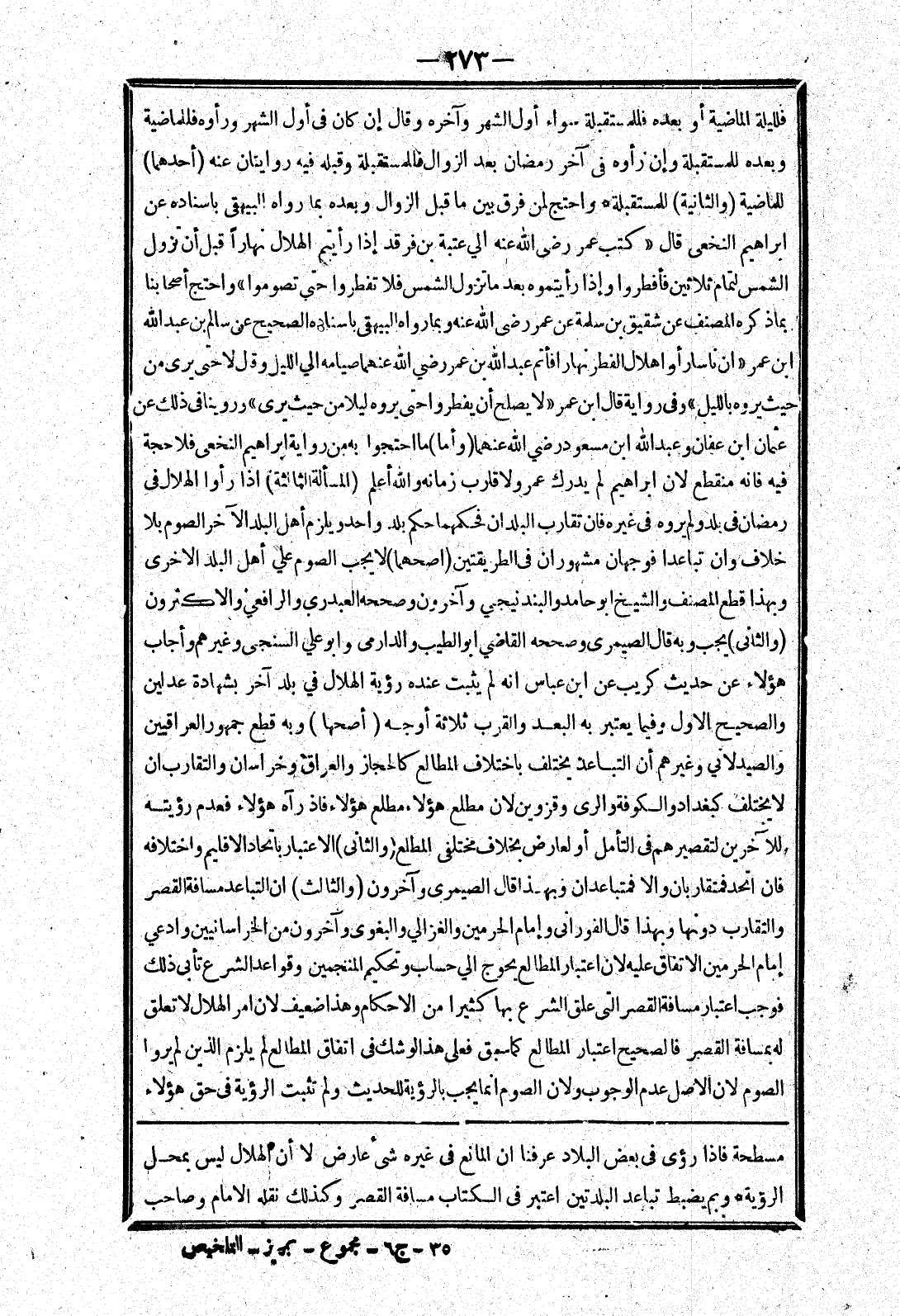مسطحة فإذا رؤى في بعض البلاد عرفنا ان المانع في غيره شئ عارض لا أن الهلال ليس بمحل الرؤيه * وبم يضبط تباعد البلدتين اعتبر في الكتاب مسافة القصر وكذلك نقله الامام وصاحب