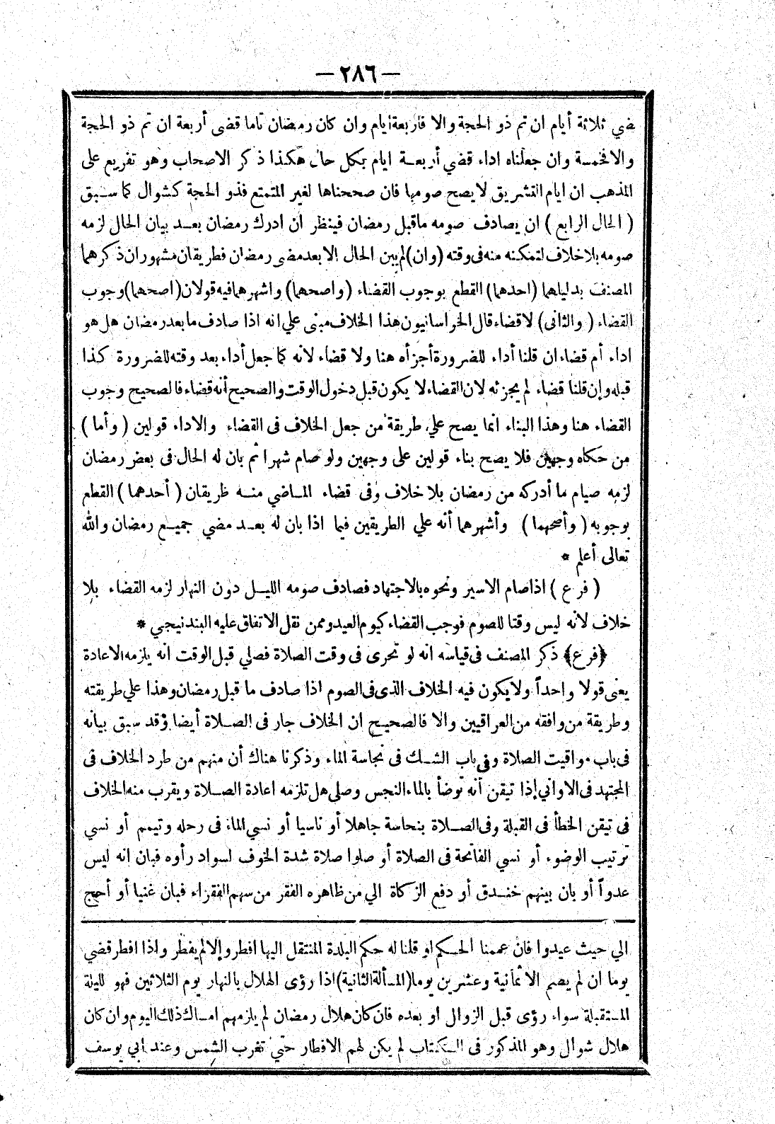 الي حيث عيدوا فان عممنا الحكم أو قلنا له حكم البلدة المنتقل إليها افطر وإلا لم يفطر وإذا افطر قضي يوما ان لم يصم الا ثمانية وعشرين يوما (المسألة الثانية) إذا رؤى الهلال بالنهار يوم الثلاثين فهو لليلة المستقبلة سواء رؤى قبل الزوال أو بعده فان كان هلال رمضان لم يلزمهم امساك ذلك اليوم وان كان هلال شوال وهو المذكور في الكتاب لم يكن لهم الافطار حتي تغرب الشمس وعند ابي يوسف