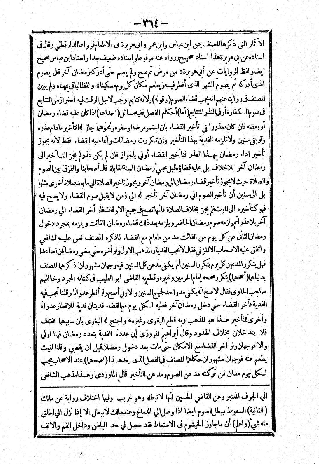 الي الجوف المعتبر وعن القاضي الحسين انها لا تبطله وهو غريب وفيها اختلاف رواية عن مالك (الثانية) السعوط مبطل للصوم ايضا إذا وصل الي الدماغ وعند مالك لا يبطل الا إذا نزل الي الحلق منه شئ (واعلم) أن ما جاوز الخيشوم في الاستعاط فقد حصل في حد الباطن وداخل الفم والانف