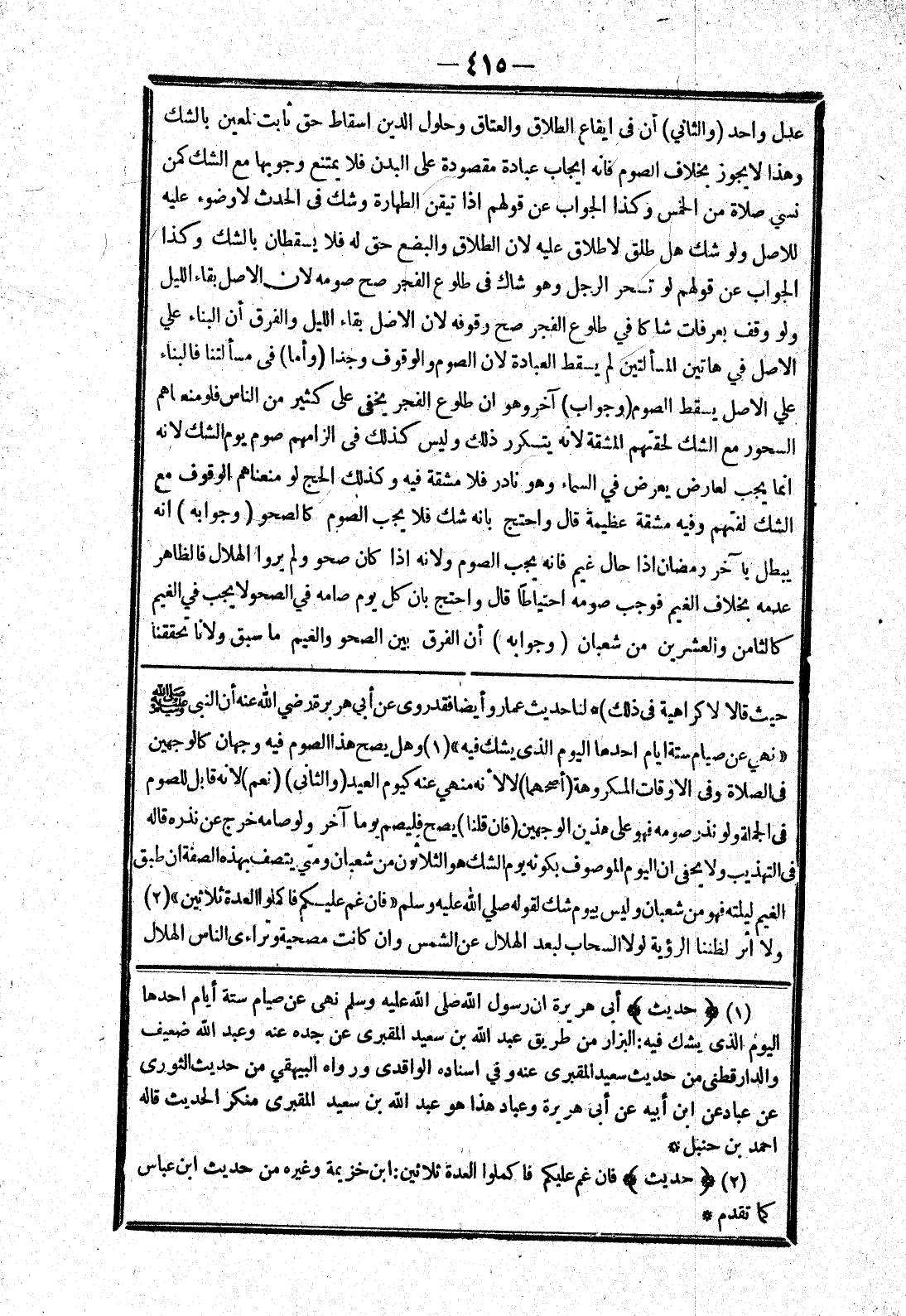 حيث قالا لا كراهية في ذلك) * لنا حديث عمار وأيضا فقد روى عن أبى هريرة رضي الله عنه أن النبي صلى الله عليه وسلم " نهي عن صيام ستة ايام احدها اليوم الذى يشك فيه " وهل يصح هذا الصوم فيه وجهان كالوجهين في الصلاة وفى الاوقات المكروهة (أصحهما) لا لانه منهي عنه كيوم العيد (والثانى) (نعم) لانه قابل للصوم في الجملة ولو نذر صومه فهو على هذين الوجهين (فان قلنا) يصح فليصم يوما آخر ولو صامه خرج عن نذره قاله في التهذيب ولا يحفى ان اليوم الموصوف بكونه يوم الشك هو الثلاثون من شعبان ومتي يتصف بهذه الصفة ان طبق الغيم ليلته فهو من شعبان وليس بيوم شك لقوله صلي الله عليه وسلم " فان غم عليكم فاكملوا العدة ثلاثين " ولا اثر لظننا الرؤية لولا السحاب لبعد الهلال عن الشمس وان كانت السماء مصحية وتراءى الناس الهلال