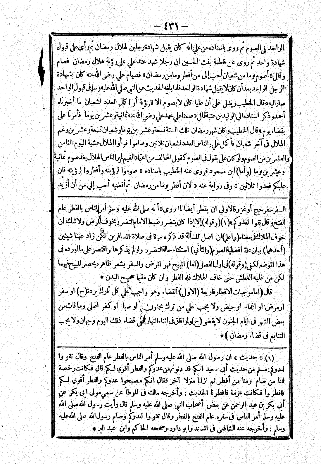السفر سفر حج أو غزو فالاولي ان يفطر أيضا لما روى " أنه صلى الله عليه وسلم أمر الناس بالفطر عام الفتح وقال تقووا لعدوكم " (وقوله) إلا إذا كان يتضرر ضبط الامام التضرر بخوف المرض ولا شك ان خوف الهلاك في معناه (واعلم) ان اصل المسألة قد ذكره مرة في صلاة المسافرين لكن زاد ههنا شيئين (أحدهما) بيان علة افضلية الصوم (والثاني) استثناء حالة التضرر ولو لم يذكرها واقتصر على ما اورده في هذا الموضع لكفى (وقوله) في اول الفصل (اما) المبيح فهو المرض والسفر يشعر ظاهره بحصر المبيح فيهما لكن من غلبه العطش حتى خاف الهلاك فله الفطر وان كان مقيما صحيح البدن * قال {اما موجبات الافطار فأربعة (الاول) القضاء وهو واجب علي كل تارك بردة (ح) أو سفر أو مرض أو اغماء أو حيض ولا يجب علي من ترك بجنون أو صبا أو كفر اصلى وما فات من بعض الشهر في ايام الجنون لا يقضى (ح) ولو افاق في اثناء النهار ففى قضاء ذلك اليوم وجهان ولا يجب التتابع في قضاء رمضان} *