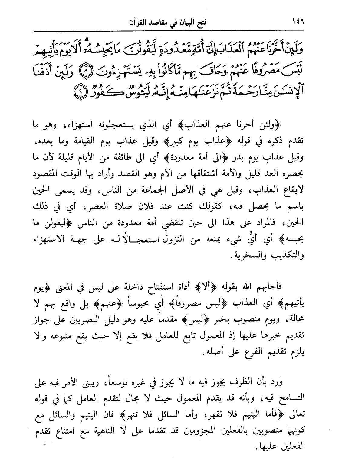 وَلَئِنْ أَخَّرْنَا عَنْهُمُ الْعَذَابَ إِلَى أُمَّةٍ مَعْدُودَةٍ لَيَقُولُنَّ مَا يَحْبِسُهُ أَلَا يَوْمَ يَأْتِيهِمْ لَيْسَ مَصْرُوفًا عَنْهُمْ وَحَاقَ بِهِمْ مَا كَانُوا بِهِ يَسْتَهْزِئُونَ (8) وَلَئِنْ أَذَقْنَا الْإِنْسَانَ مِنَّا رَحْمَةً ثُمَّ نَزَعْنَاهَا مِنْهُ إِنَّهُ لَيَئُوسٌ كَفُورٌ (9)