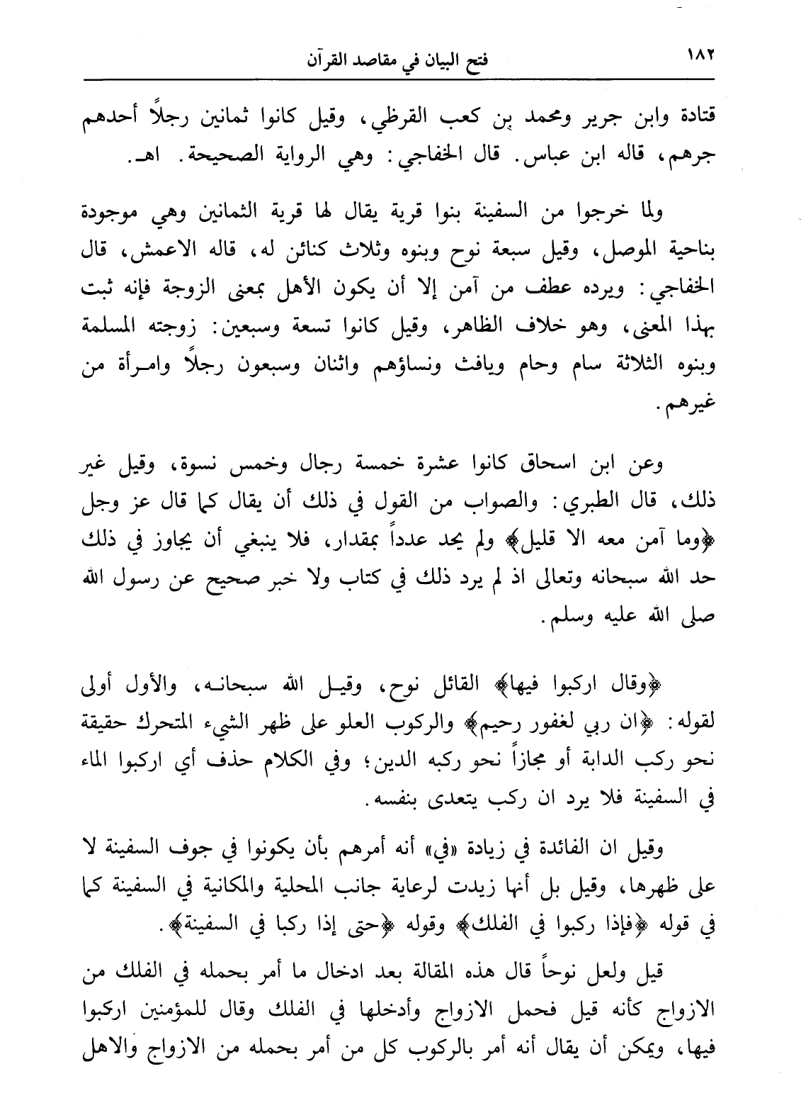 وقيل أن الفائدة في زيادة " في " أنه أمرهم بأن يكونوا في جوف السفينة لا على ظهرها، وقيل بل أنها زيدت لرعاية جانب المحلية والمكانية في السفينة كما في قوله (فإذا ركبوا في الفلك) وقوله (حتى إذا ركبا في السفينة).