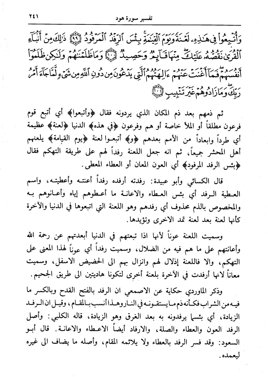 وَأُتْبِعُوا فِي هَذِهِ لَعْنَةً وَيَوْمَ الْقِيَامَةِ بِئْسَ الرِّفْدُ الْمَرْفُودُ (99) ذَلِكَ مِنْ أَنْبَاءِ الْقُرَى نَقُصُّهُ عَلَيْكَ مِنْهَا قَائِمٌ وَحَصِيدٌ (100) وَمَا ظَلَمْنَاهُمْ وَلَكِنْ ظَلَمُوا أَنْفُسَهُمْ فَمَا أَغْنَتْ عَنْهُمْ آلِهَتُهُمُ الَّتِي يَدْعُونَ مِنْ دُونِ اللَّهِ مِنْ شَيْءٍ لَمَّا جَاءَ أَمْرُ رَبِّكَ وَمَا زَادُوهُمْ غَيْرَ تَتْبِيبٍ (101)