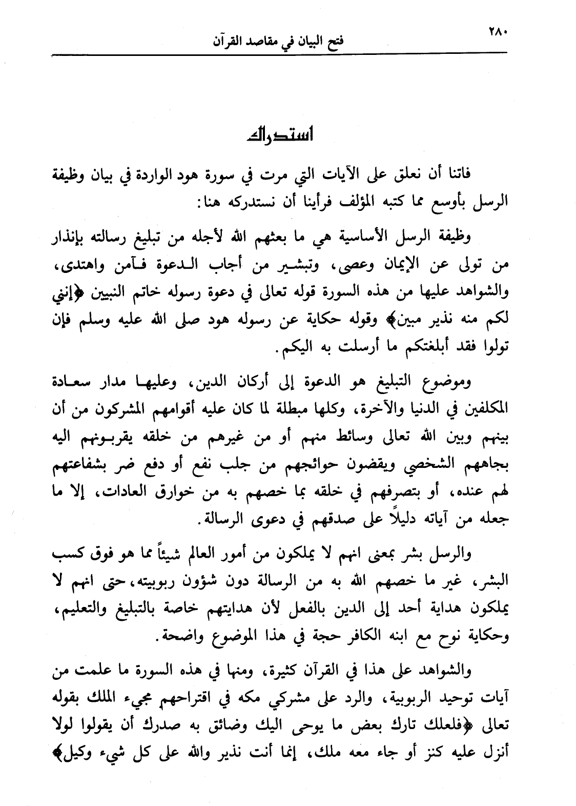 فاتنا أن نعلق على الآيات التي مرت في سورة هود الواردة في بيان وظيفة الرسل بأوسع مما كتبه المؤلف فرأينا أن نستدركه هنا: