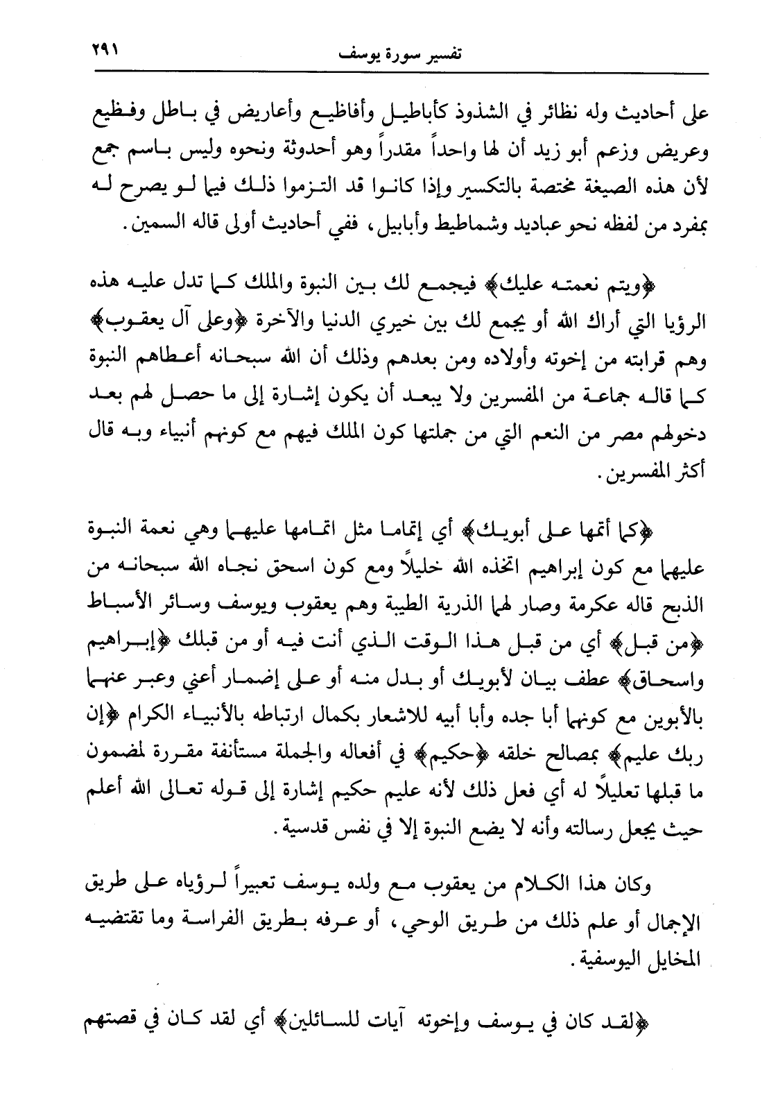 وكان هذا الكلام من يعقوب مع ولده يوسف تعبيراً لرؤياه على طريق الإجمال أو علم ذلك من طريق الوحي، أو عرفه بطريق الفراسة وما تقتضيه المخايل اليوسفية.