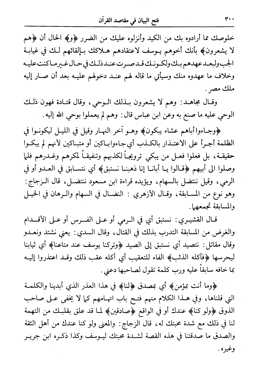 قال القشيري: نستبق أي في الرمي أو على الفرس أو على الأقدام والغرض من المسابقة التدرب بذلك في القتال، وقال السدي: يعني نشتد ونعدو وقال مقاتل: نتصيد أي نستبق إلى الصيد (وتركنا يوسف عند متاعنا) أي ثيابنا ليحرسها (فأكله الذئب) الفاء للتعقيب أي أكله عقب ذلك وقد اعتذروا إليه بما خافه سابقاً عليه ورب كلمة تقول لصاحبها دعني.