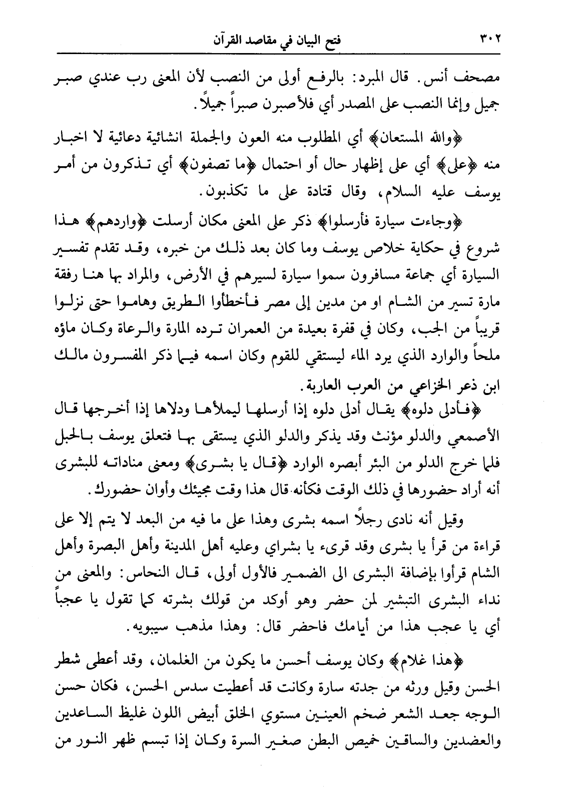 (وجاءت سيارة فأرسلوا) ذكر على المعنى مكان أرسلت (واردهم) هذا شروع في حكاية خلاص يوسف وما كان بعد ذلك من خبره، وقد تقدم تفسير السيارة أي جماعة مسافرون سموا سيارة لسيرهم في الأرض، والمراد بها هنا رفقة مارة تسير من الشام أو من مدين إلى مصر فأخطأوا الطريق وهاموا حتى نزلوا قريباً من الجب، وكان في قفرة بعيدة من العمران ترده المارة والرعاة وكان ماؤه ملحاً والوارد الذي يرد الماء ليستقي للقوم وكان اسمه فيما ذكر المفسرون مالك ابن ذعر الخزاعي من العرب العاربة.
