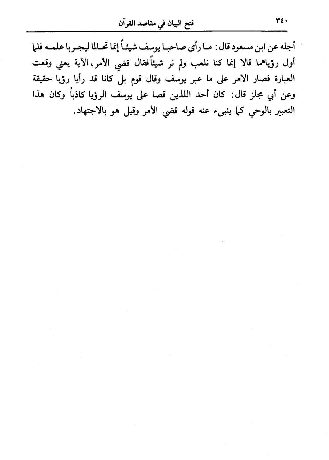 أجله عن ابن مسعود قال: ما رأى صاحبا يوسف شيئاً إنما تحالما ليجربا علمه فلما أول رؤياهما قالا إنما كنا نلعب ولم نر شيئاً فقال قضي الأمر، الآية يعني وقعت العبارة فصار الأمر على ما عبر يوسف وقال قوم بل كانا قد رأيا رؤيا حقيقة وعن أبي مجلز قال: كان أحد اللذين قصا على يوسف الرؤيا كاذباً وكان هذا التعبير بالوحي كما ينبئ عنه قوله قضي الأمر وقيل هو بالاجتهاد.