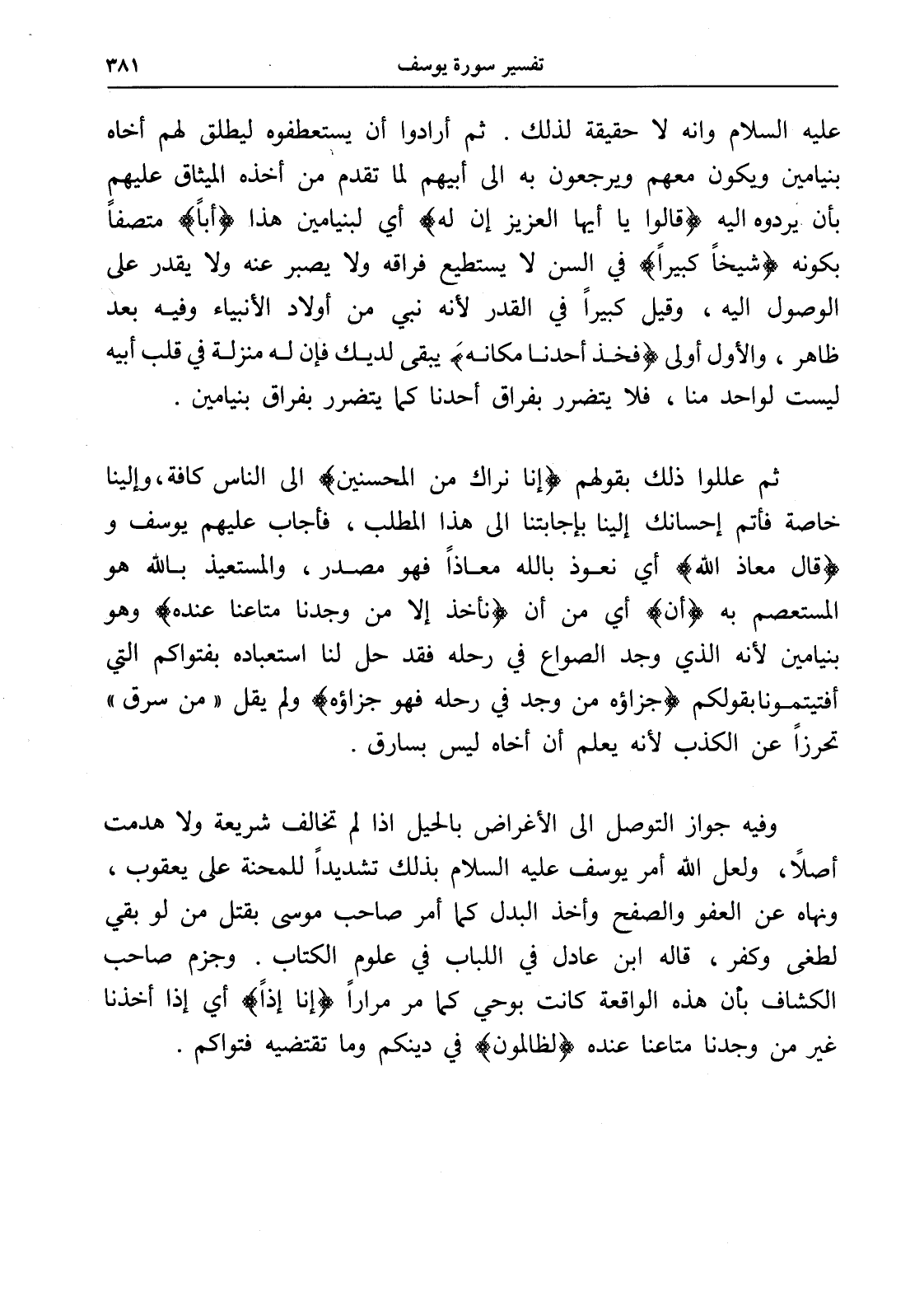 ثم عللوا ذلك بقولهم (إنا نراك من المحسنين) إلى الناس كافة، وإلينا خاصة فأتم إحسانك إلينا بإجابتنا إلى هذا المطلب، فأجاب عليهم يوسف و