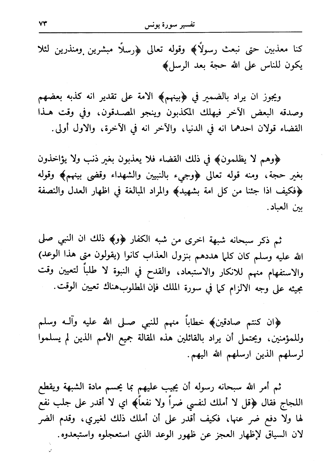 كنا معذبين حتى نبعث رسولاً) وقوله تعالى (رسلاً مبشرين ومنذرين لئلا يكون للناس على الله حجة بعد الرسل)
