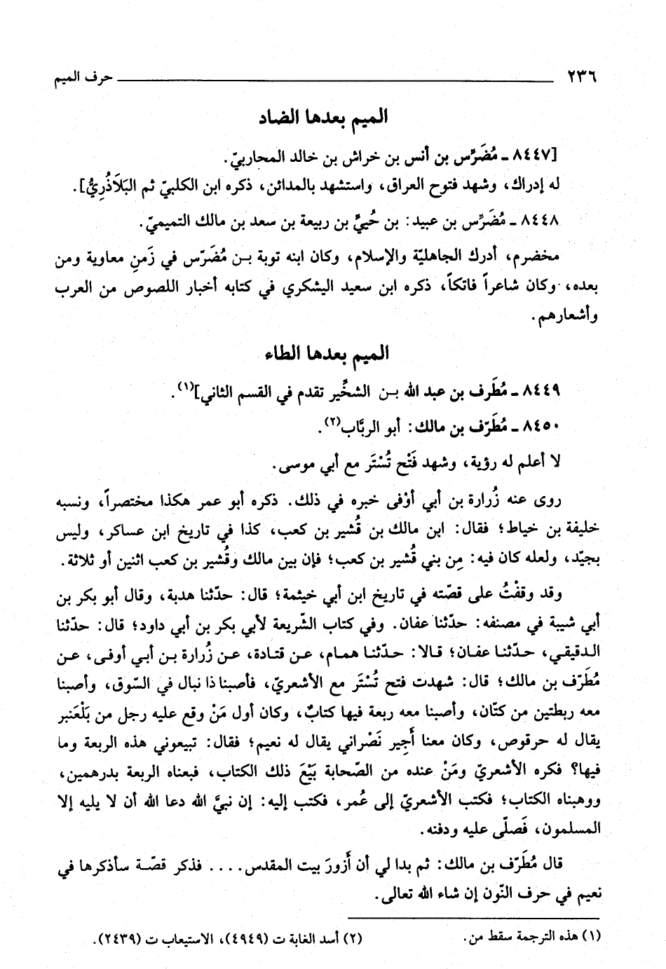 (٢) أسد الغابة ت (٤٩٤٩) ، الاستيعاب ت (٢٤٣٩) .