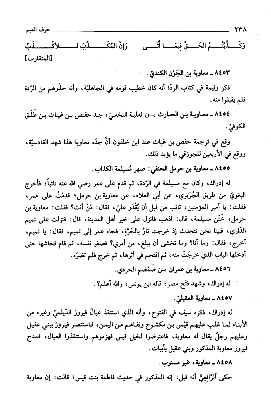 ٨٤٥٥- معاوية بن حرمل الحنفي: