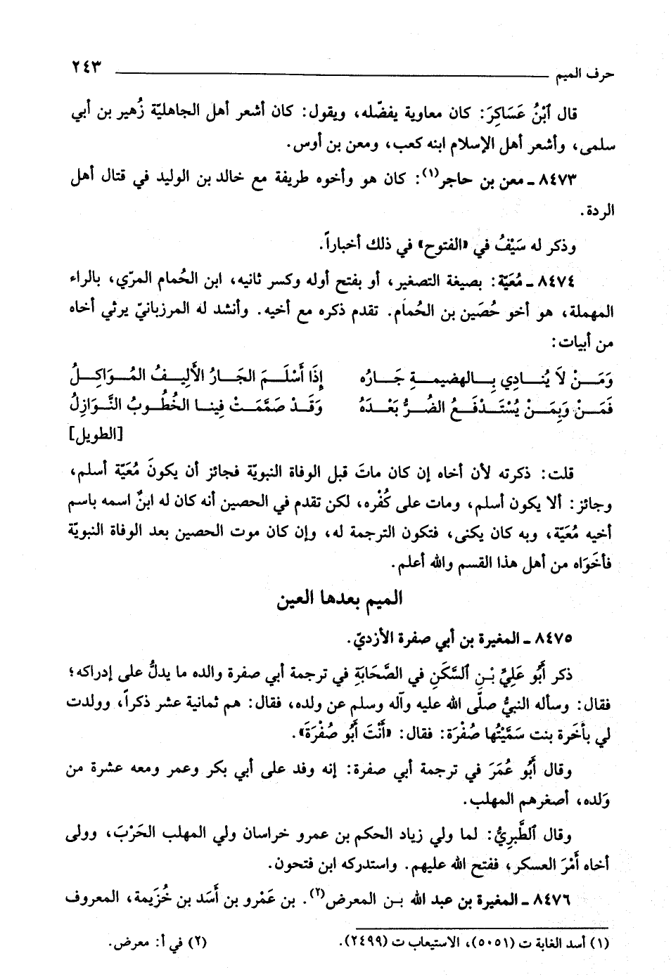 [الطويل] قلت: ذكرته لأن أخاه إن كان مات قبل الوفاة النبويّة فجائز أن يكون معيّة أسلم، وجائز: ألا يكون أسلم، ومات على كفره، لكن تقدم في الحصين أنه كان له ابن اسمه باسم أخيه معيّة، وبه كان يكنى، فتكون الترجمة له، وإن كان موت الحصين بعد الوفاة النبويّة فأخواه من أهل هذا القسم واللَّه أعلم.
