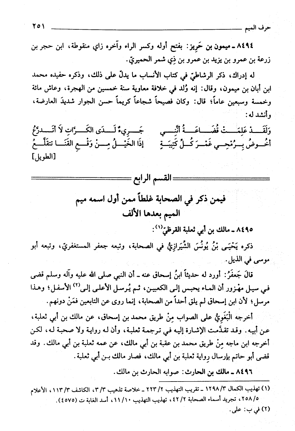 القسم الرابع فيمن ذكر في الصحابة غلطا ممن أول اسمه ميم